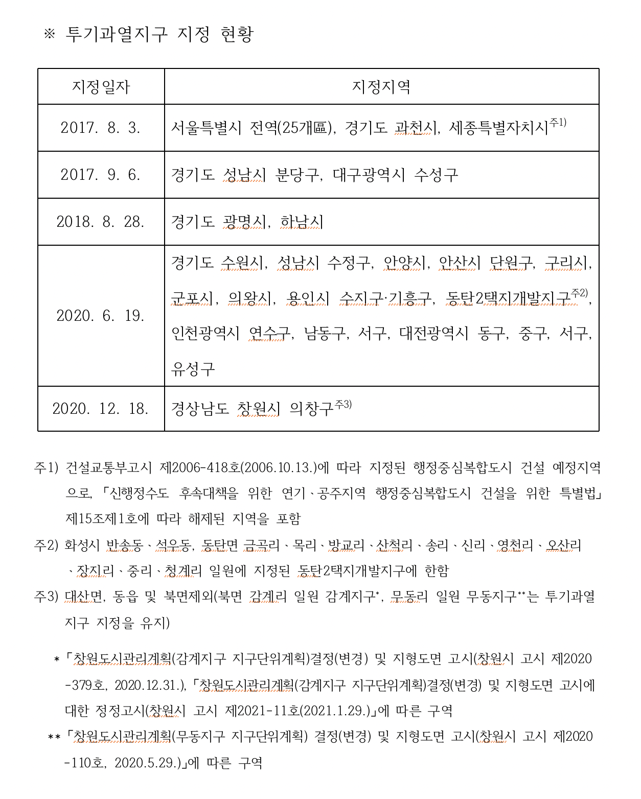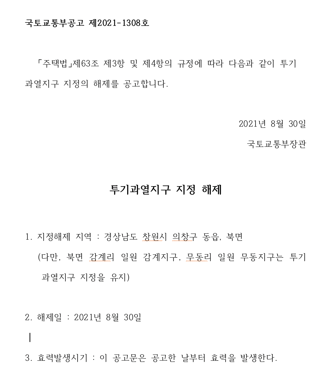 전국 투기 과열지구 지정 현황입니다. 2021년 8월 30일 기준입니다. 투기과열지구 지정에서 해제된 지역도 있는데요. 아래 국토교통부 공고문을 참고하시기 바랍니다.