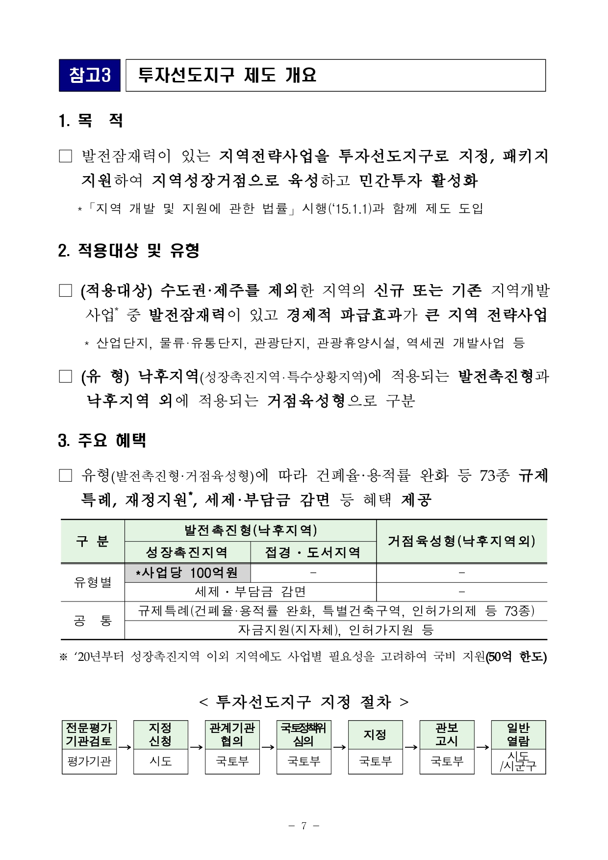 투자선도지구로 지정되면 국비지원*·세제혜택, 건폐율, 용적률 완화와 같은 규제특례를 패키지(Package) 지원받을 수 있다.