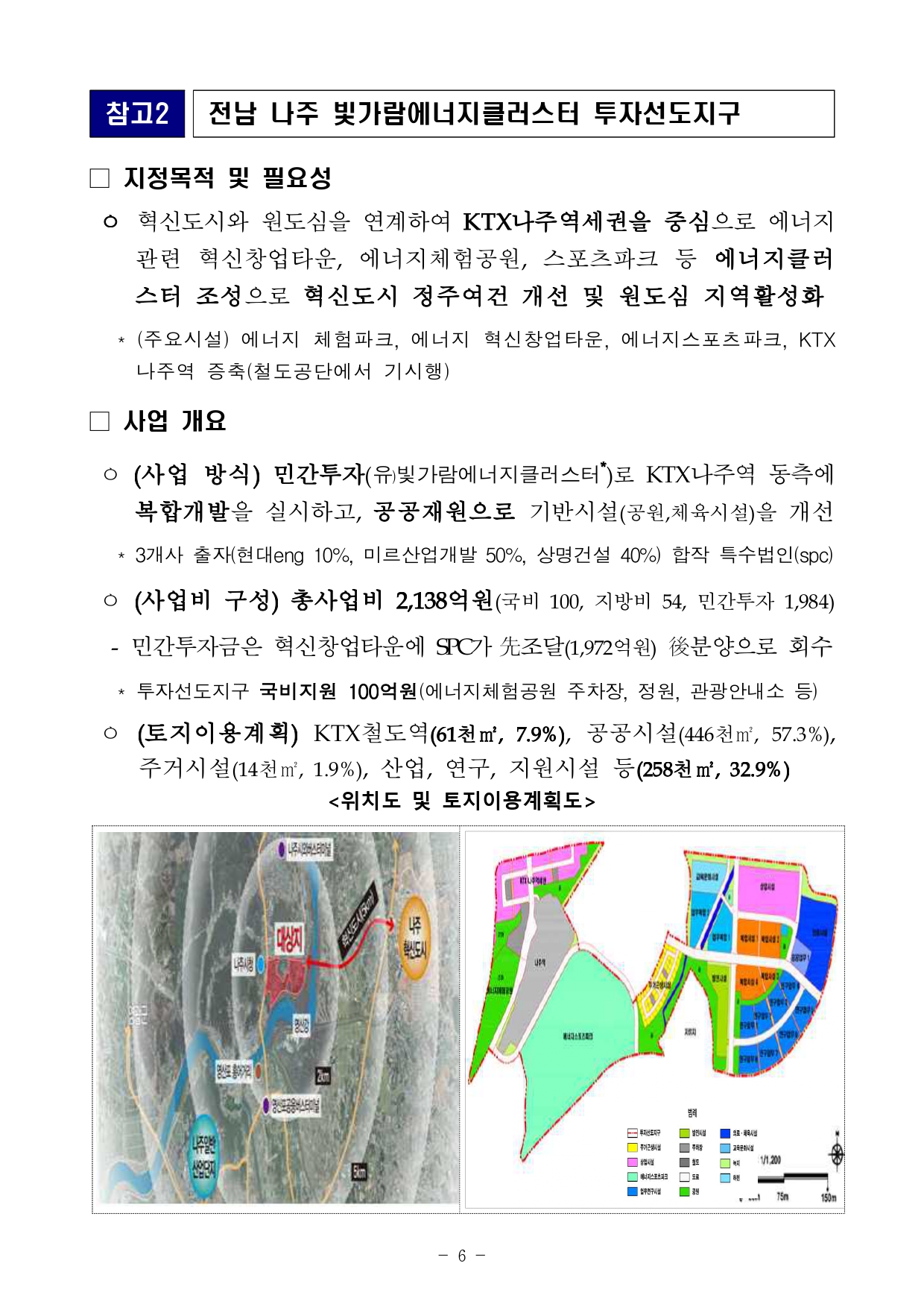 * 투자선도지구 국비지원(괴산자연드림타운: 93억원, 나주빛가람에너지클러스터: 100억원)