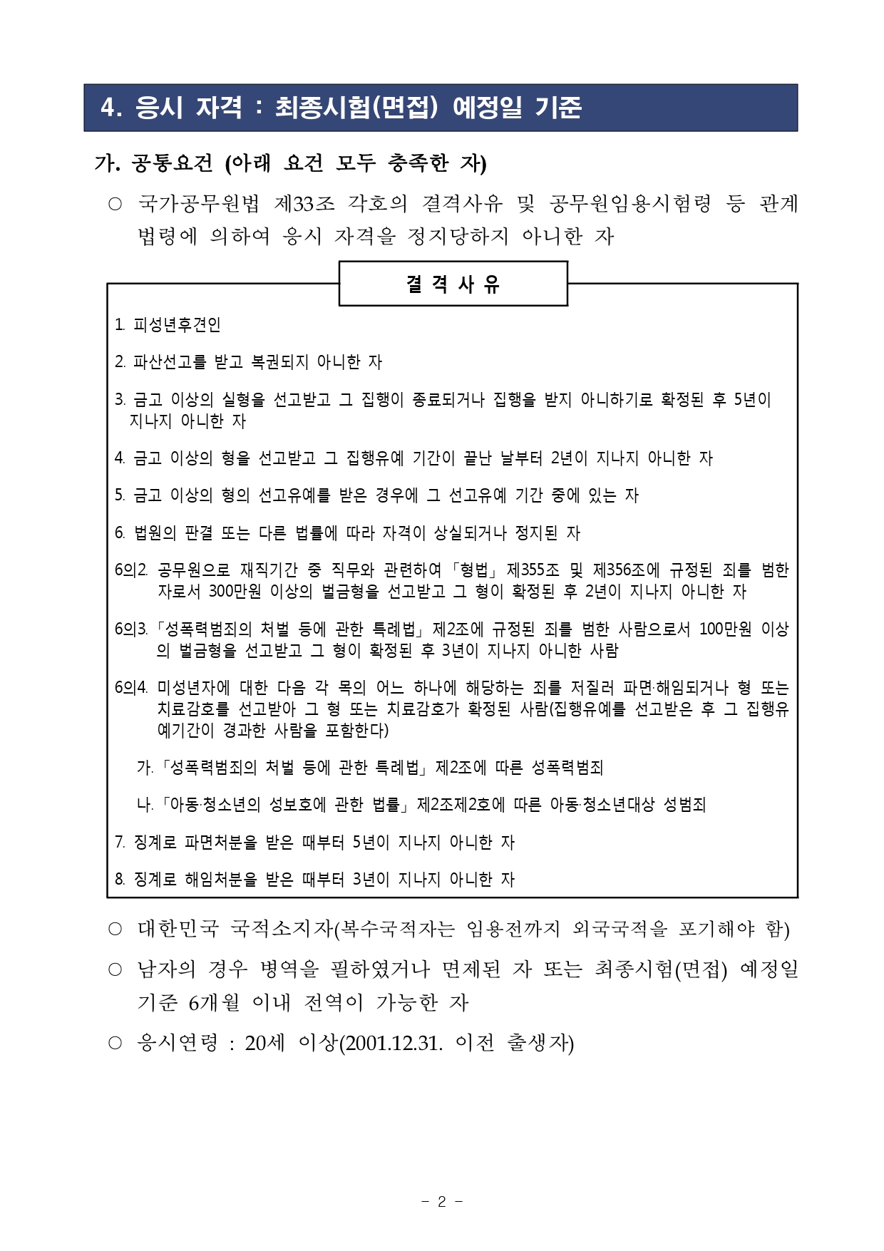 | 2021년도 대통령경호처 일반직(방호직) 공무원 경력경쟁채용시험 공고(10.18) (0) | 2021.10.20 |