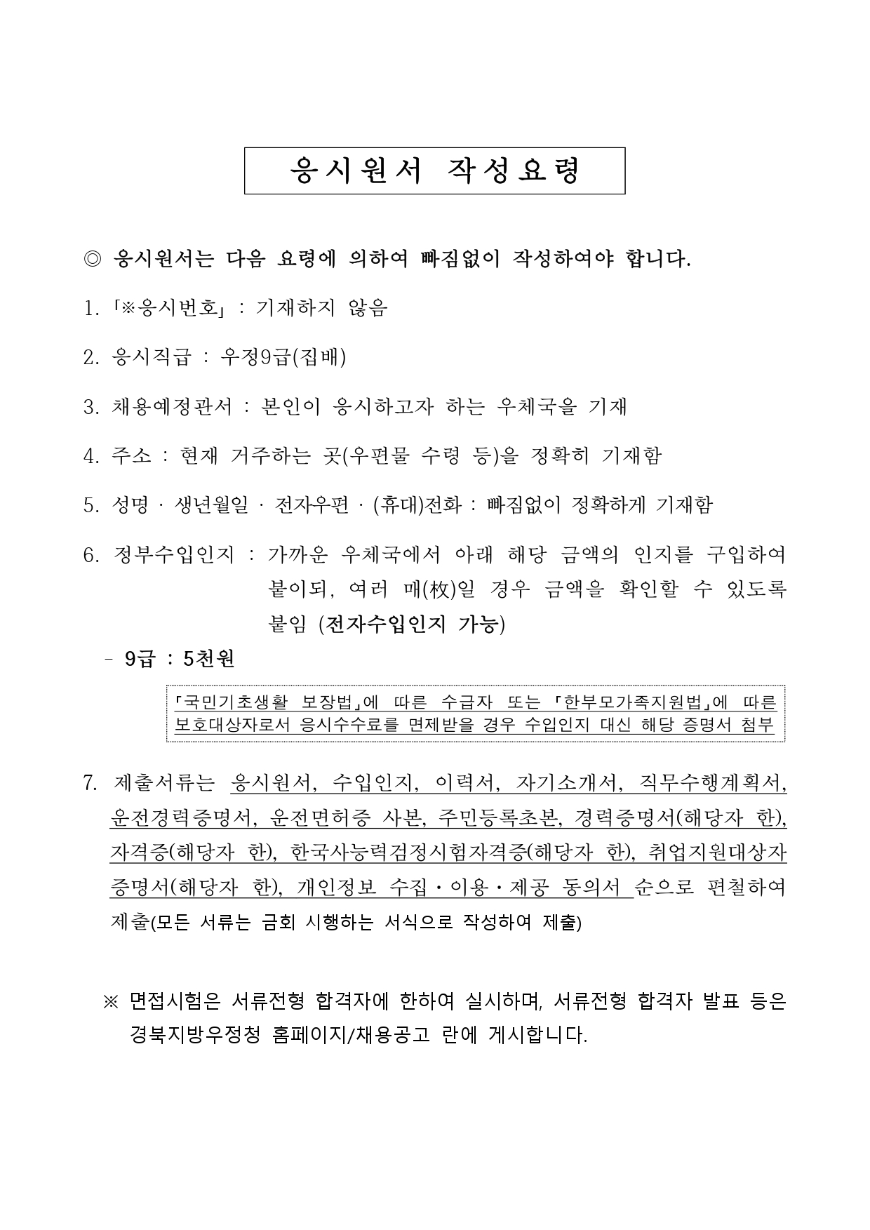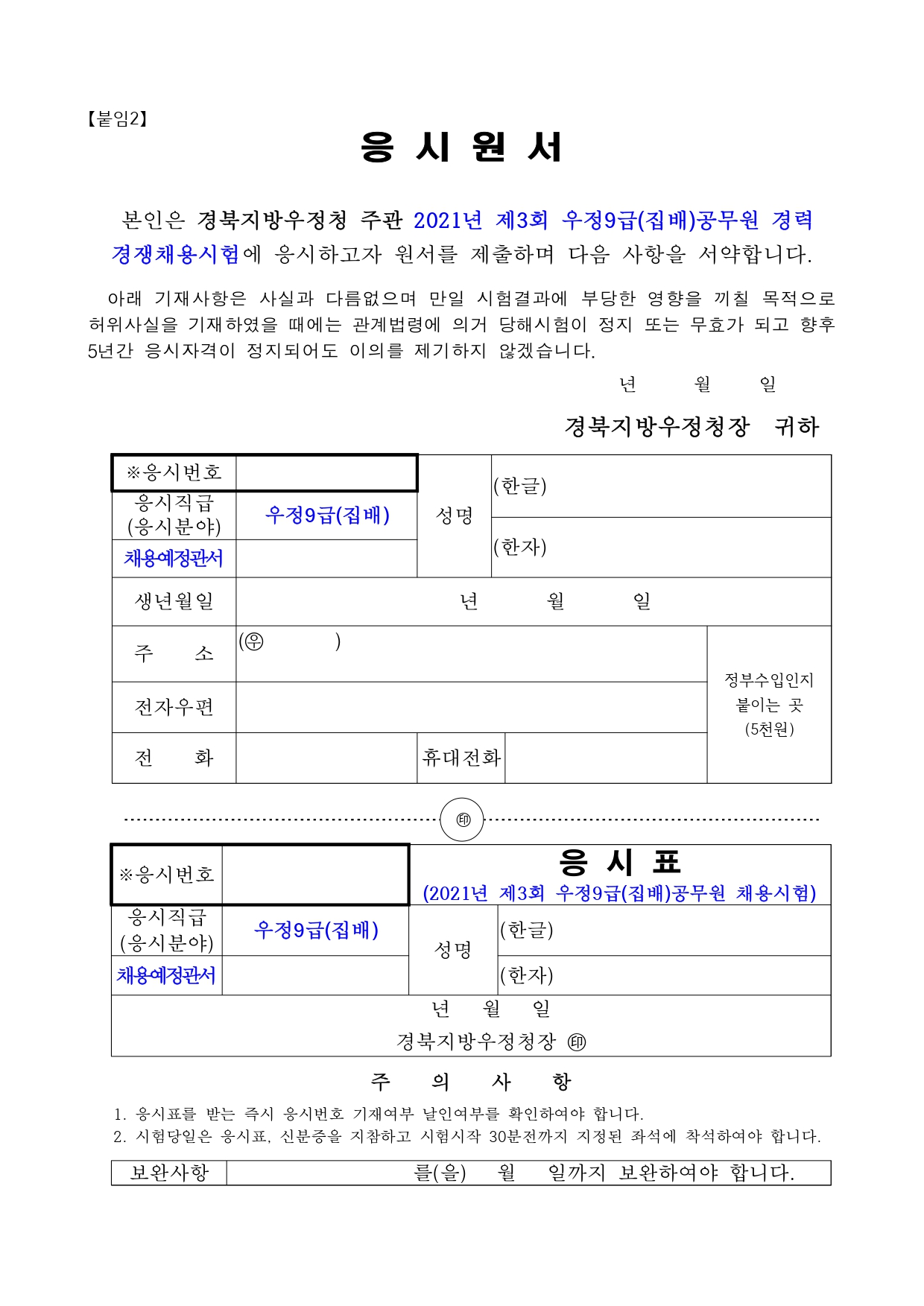 211115_경북지방우정청_응시원서등제출서류(우정9급) (1).hwp