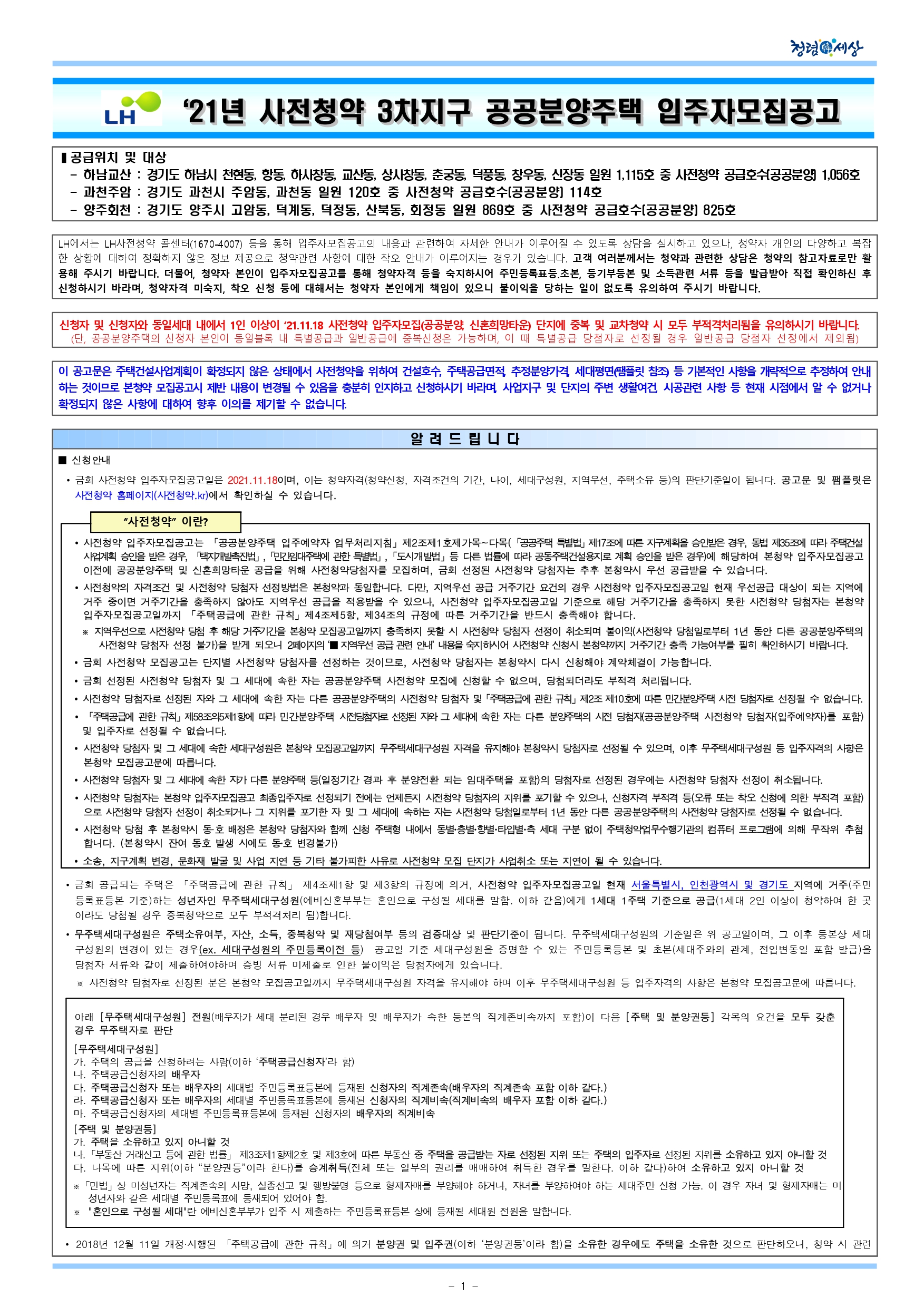 2021년 사전청약 3차지구 공공분양주택 입주자 모집공고문