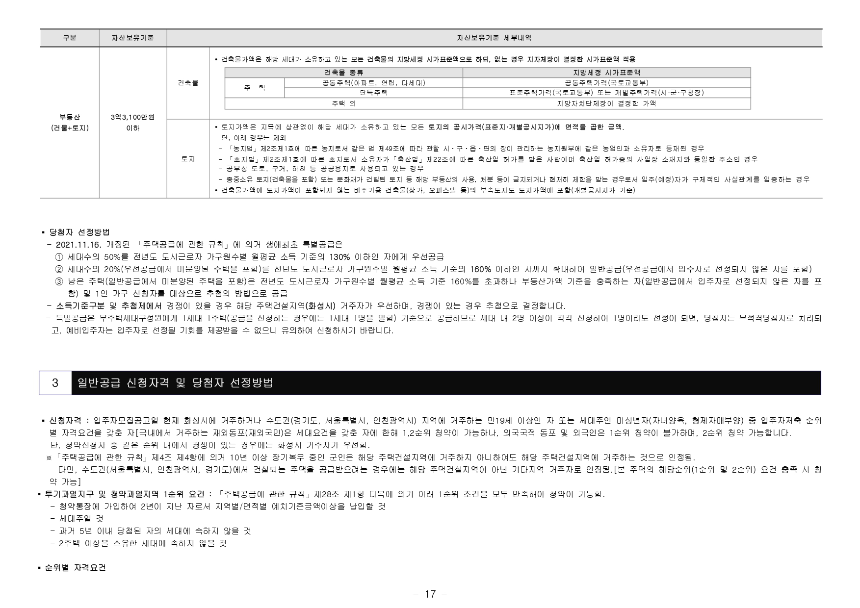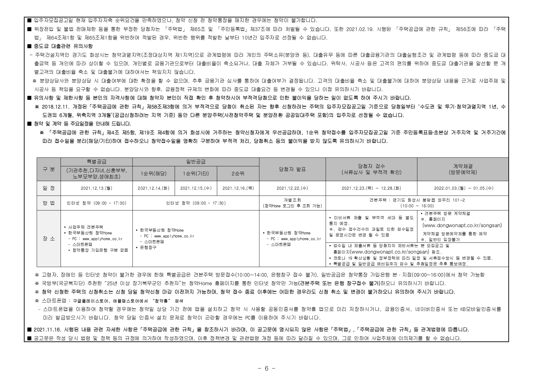 - 본 아파트의 최초 입주자모집공고일은 2021.12.03.입니다.(청약자격조건의 기간, 나이, 지역우선 등의 청약자격조건 판단기준일입니다.)