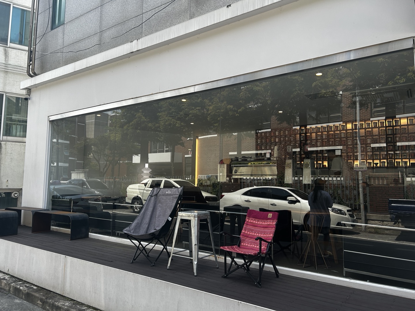 주말 화창한 가을 하늘 아래, 아담하게 자리잡은 커피 전문점이다.