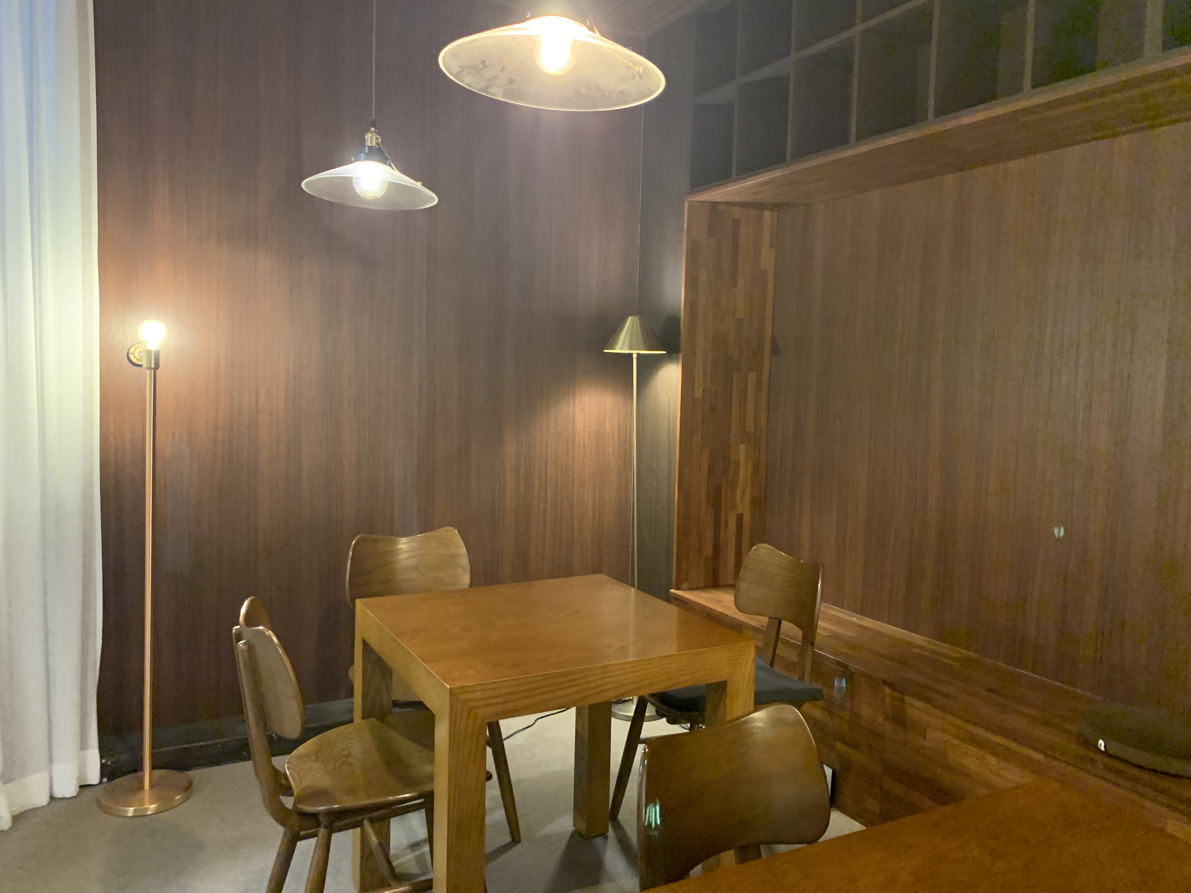 이렇게 테이블과 의자도 마련되어있다. 원목가구가 이 공간과 딱 어울린다.