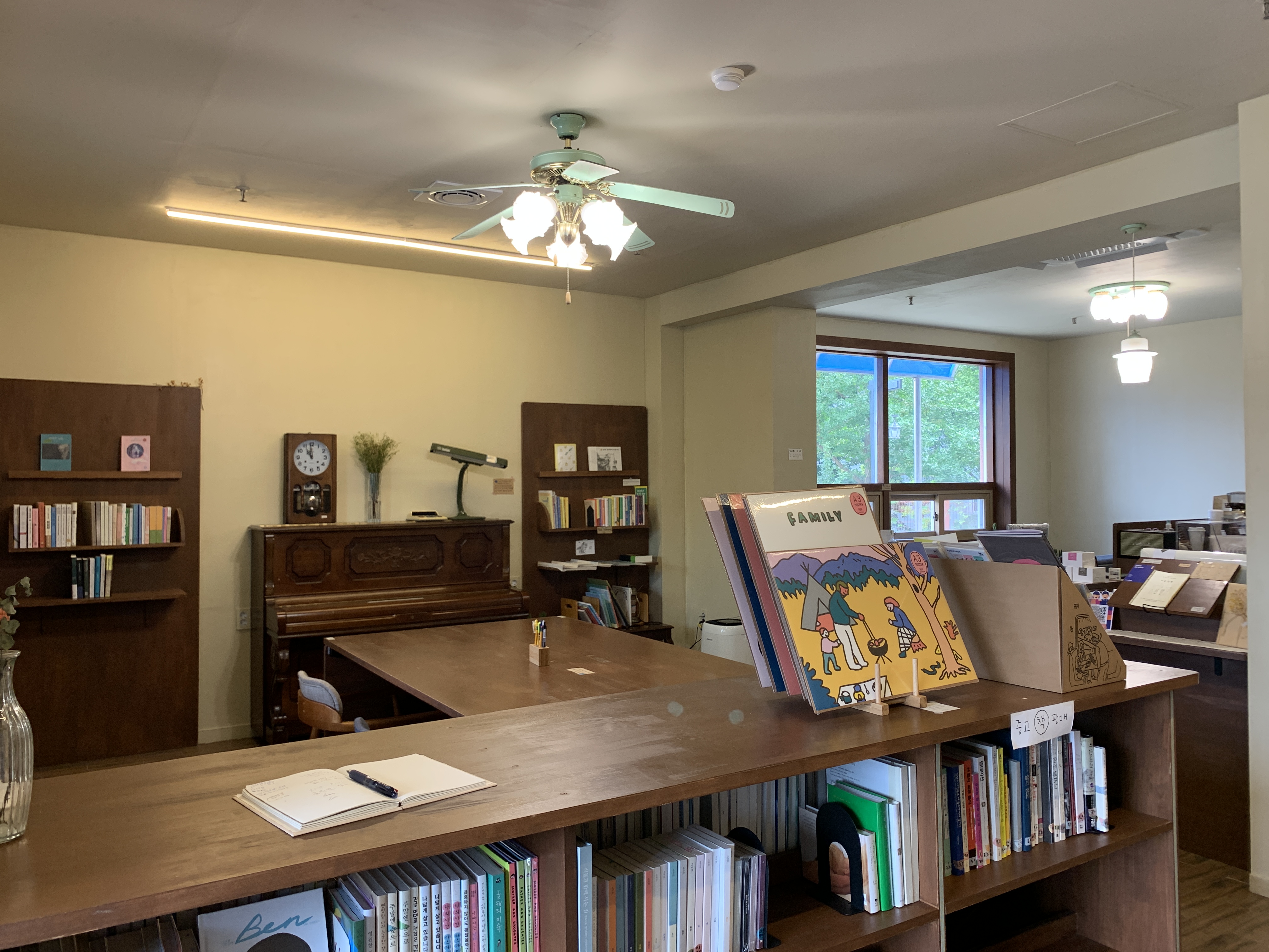 짜잔 내부의 모습이다. 주인장이 고른 책들이 진열되어 있다. 방명록도 보인다. 심플한 느낌의 책방이다. 커피를 비롯해 각종 음료수도 판매한다.