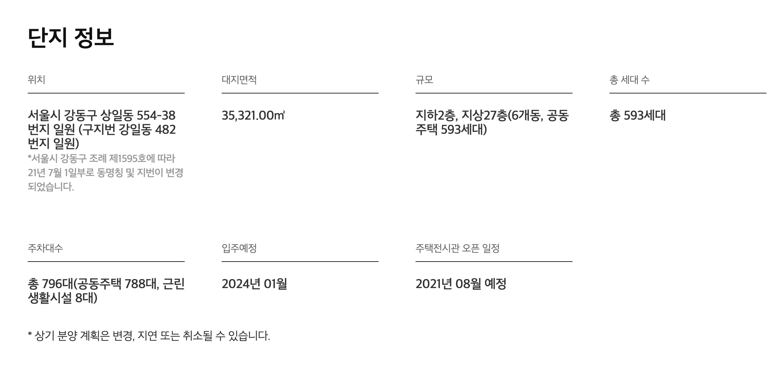 단지 반경 약 500m 내 지하철 5호선 강일역이 위치한 역세권 단지이며,