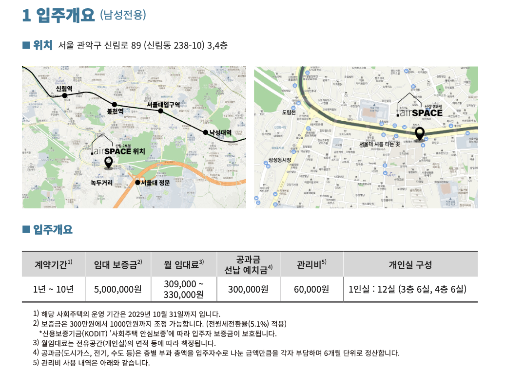 리모델링형 사회주택 에어스페이스 신림1호 및 신림2호 입주자 모집 공고입니다.