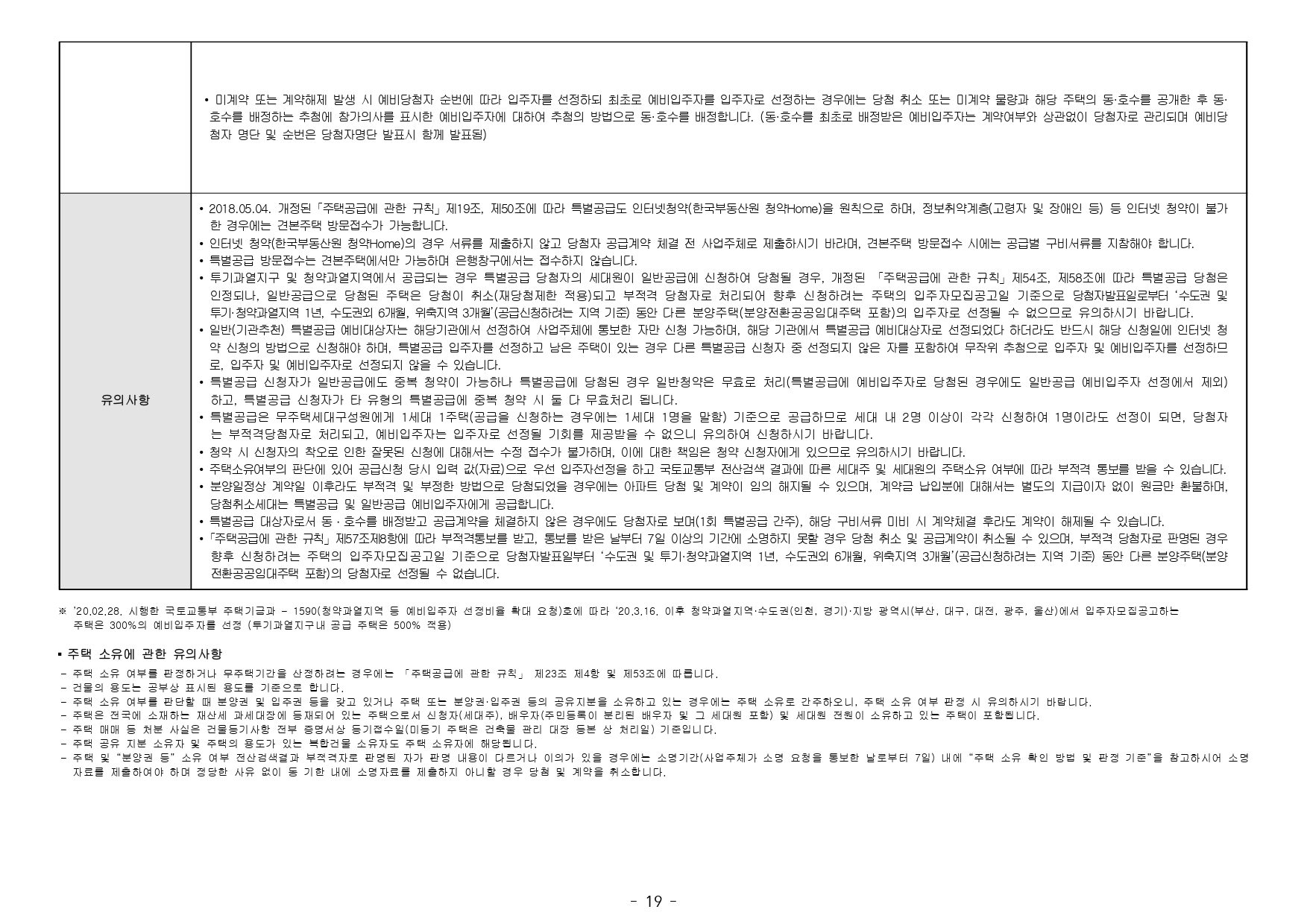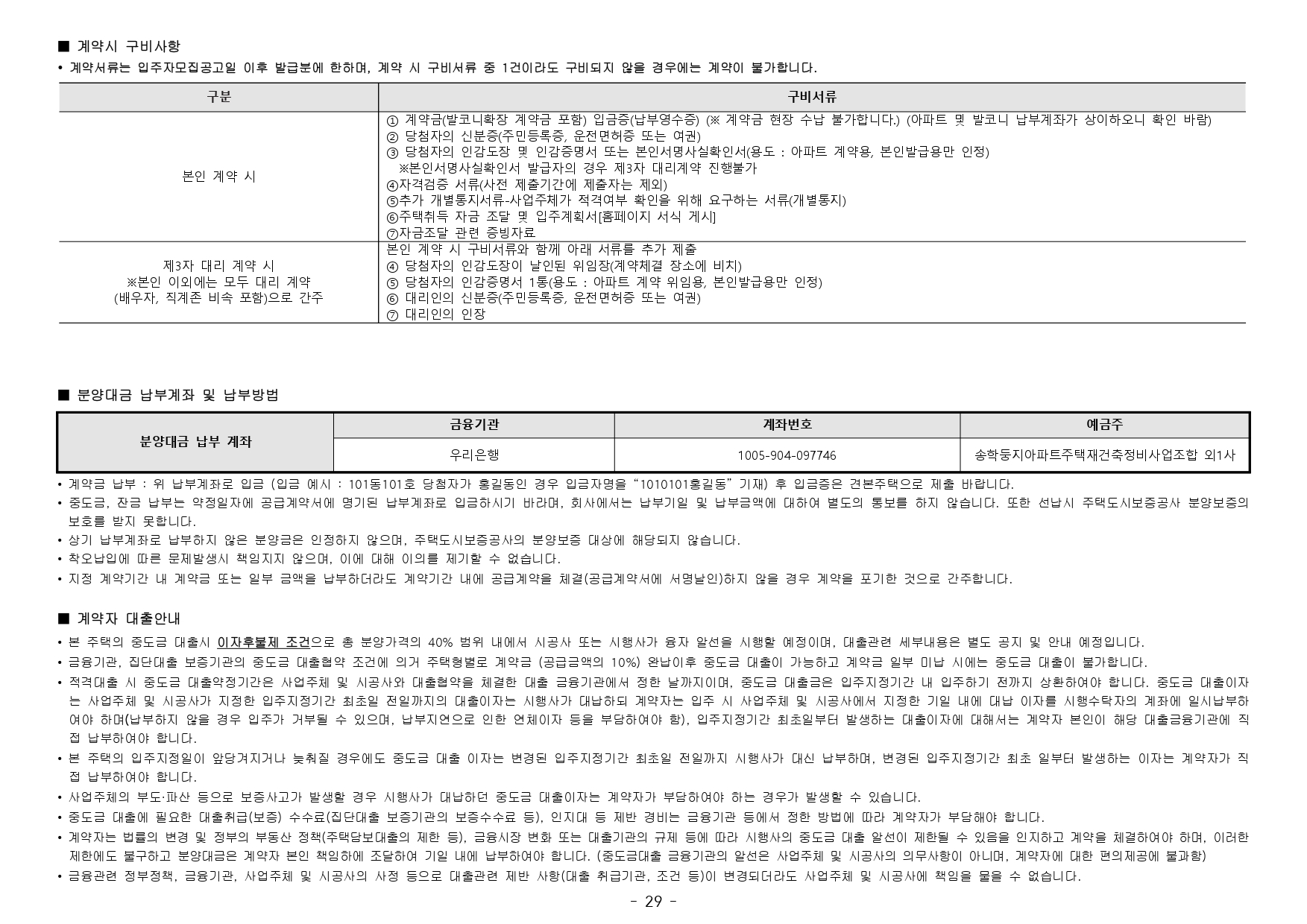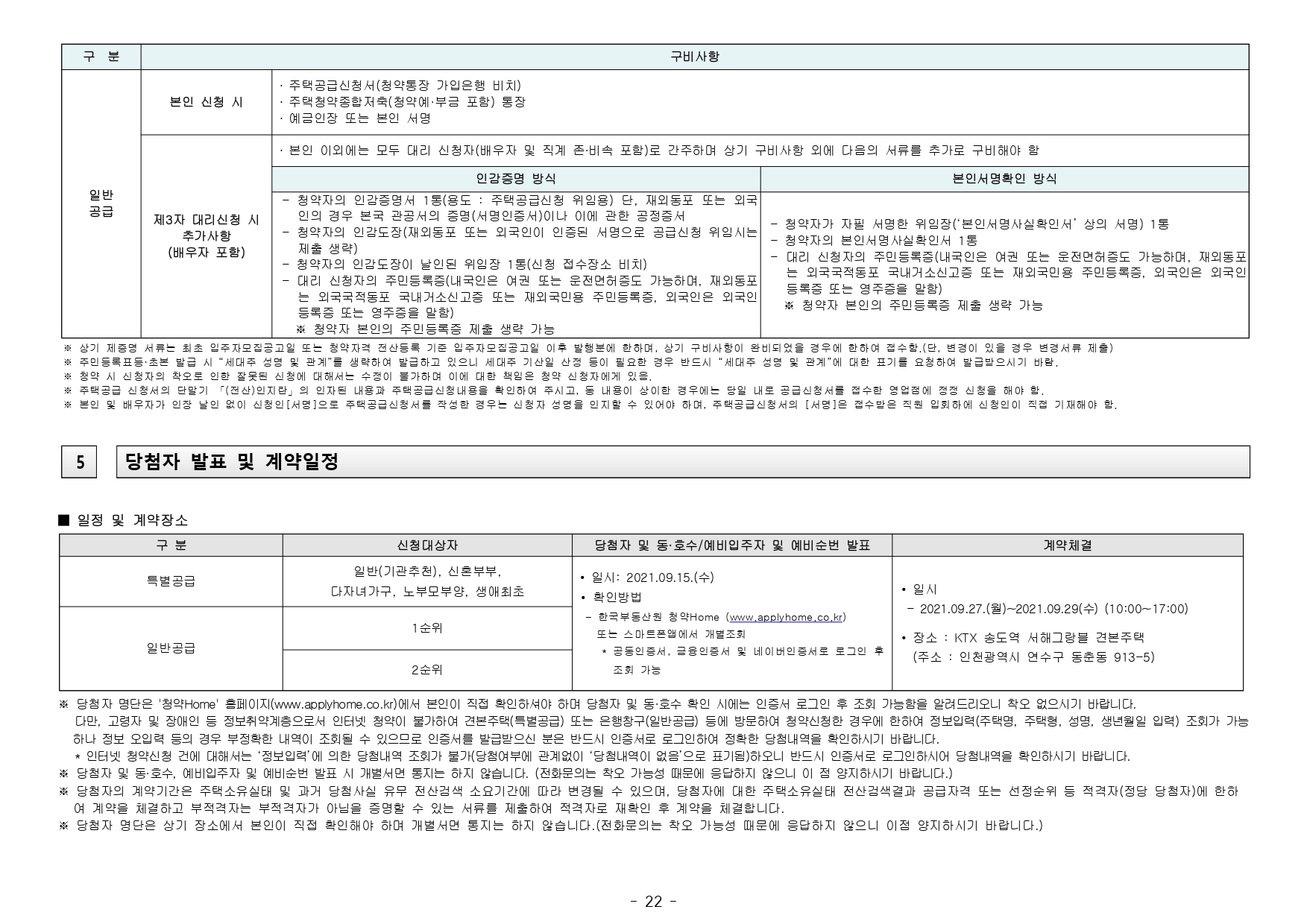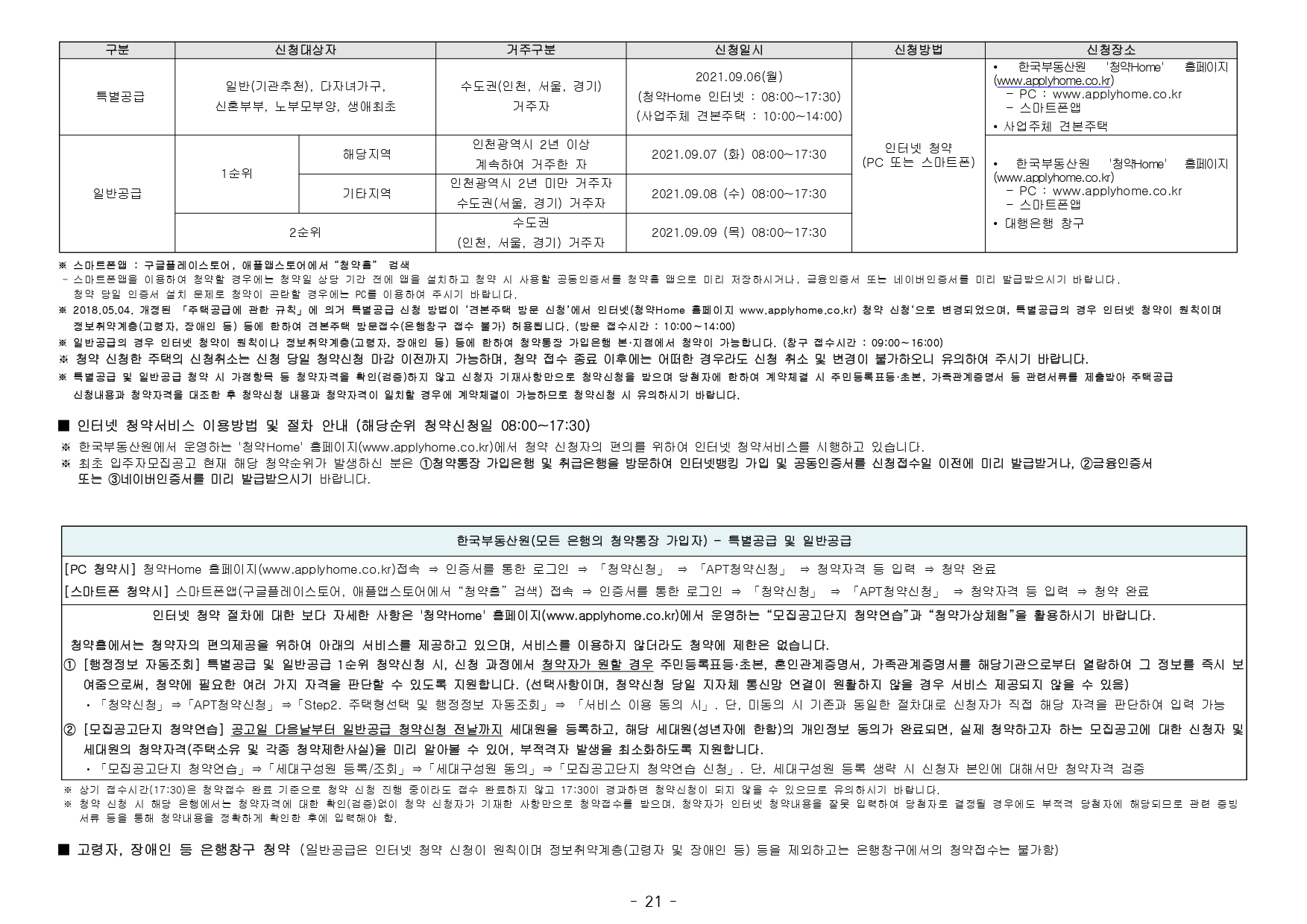 - 1순위 청약 접수를 입주자모집공고일 기준 주민등록표 등·초본상 거주지역 및 거주 기간에 따라 접수일을 구분하여 접수하오니 청약 접수일을 명확히 구분하여 부적격 처리, 당첨 취소 등의 불이익을 받지 않도록 유의하시기 바랍니다.