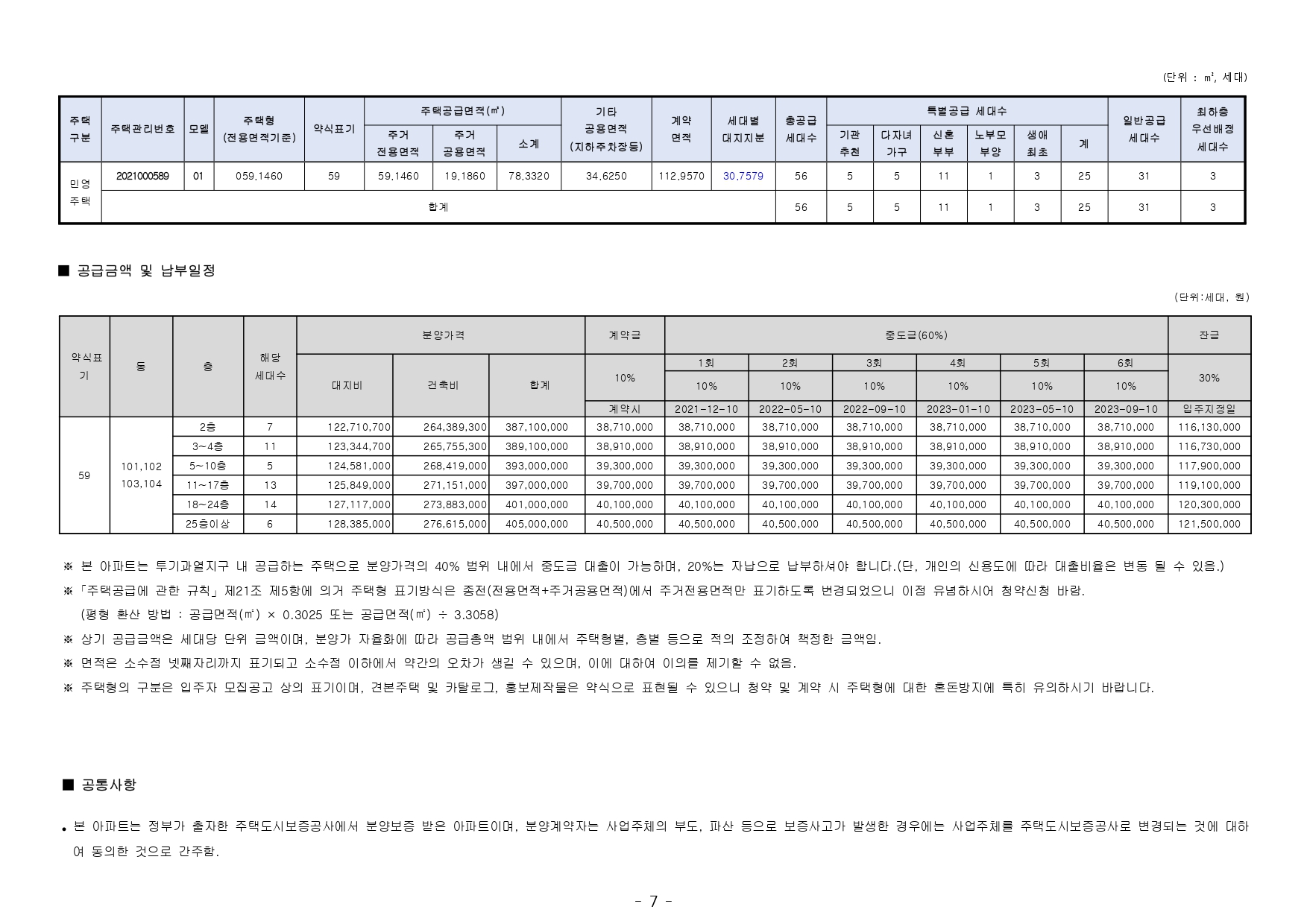 ■ 본 아파트의 최초 입주자모집공고일은 2021.08.27.(금)입니다.(청약자격조건의 기간, 나이, 지역우선 등의 청약자격조건 판단기준일입니다)