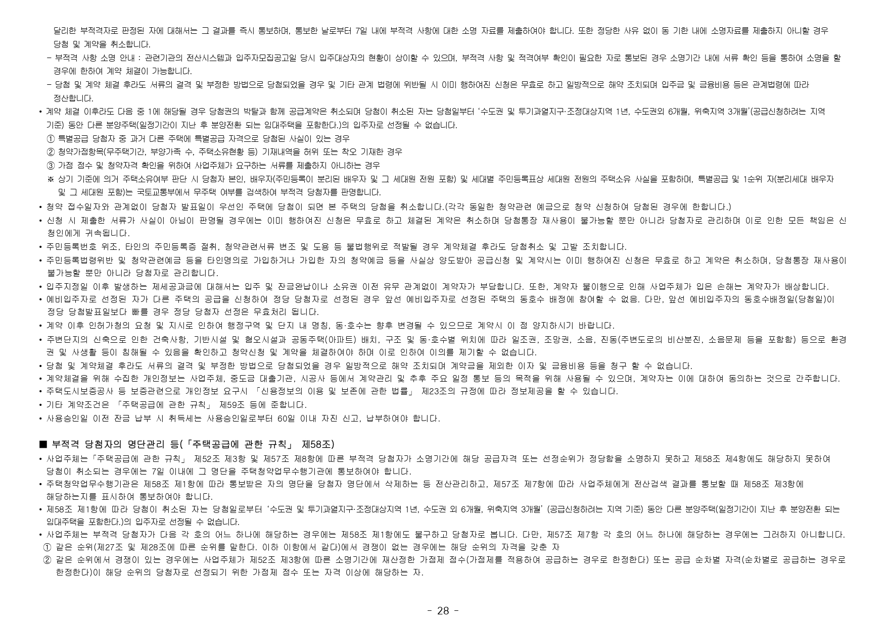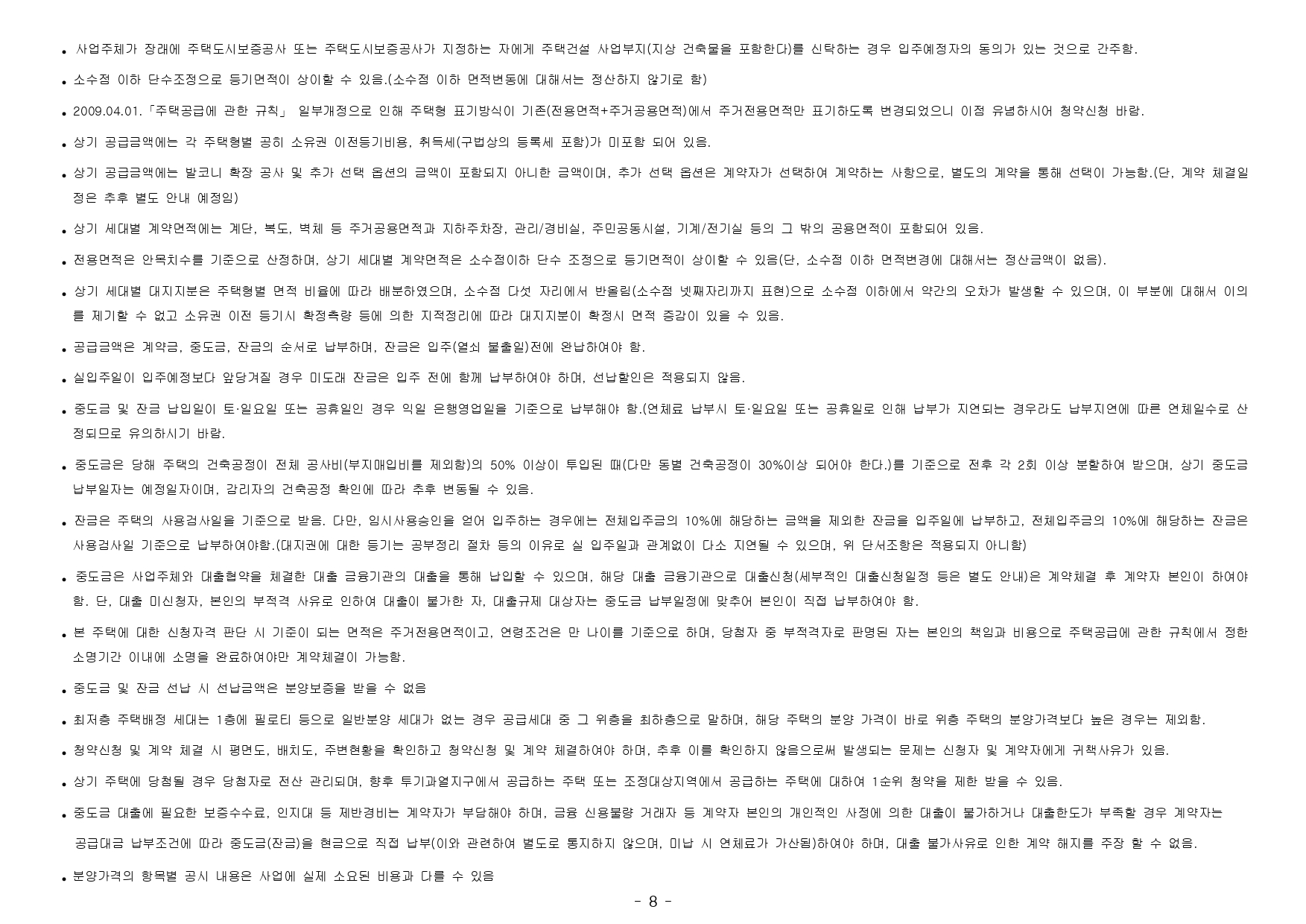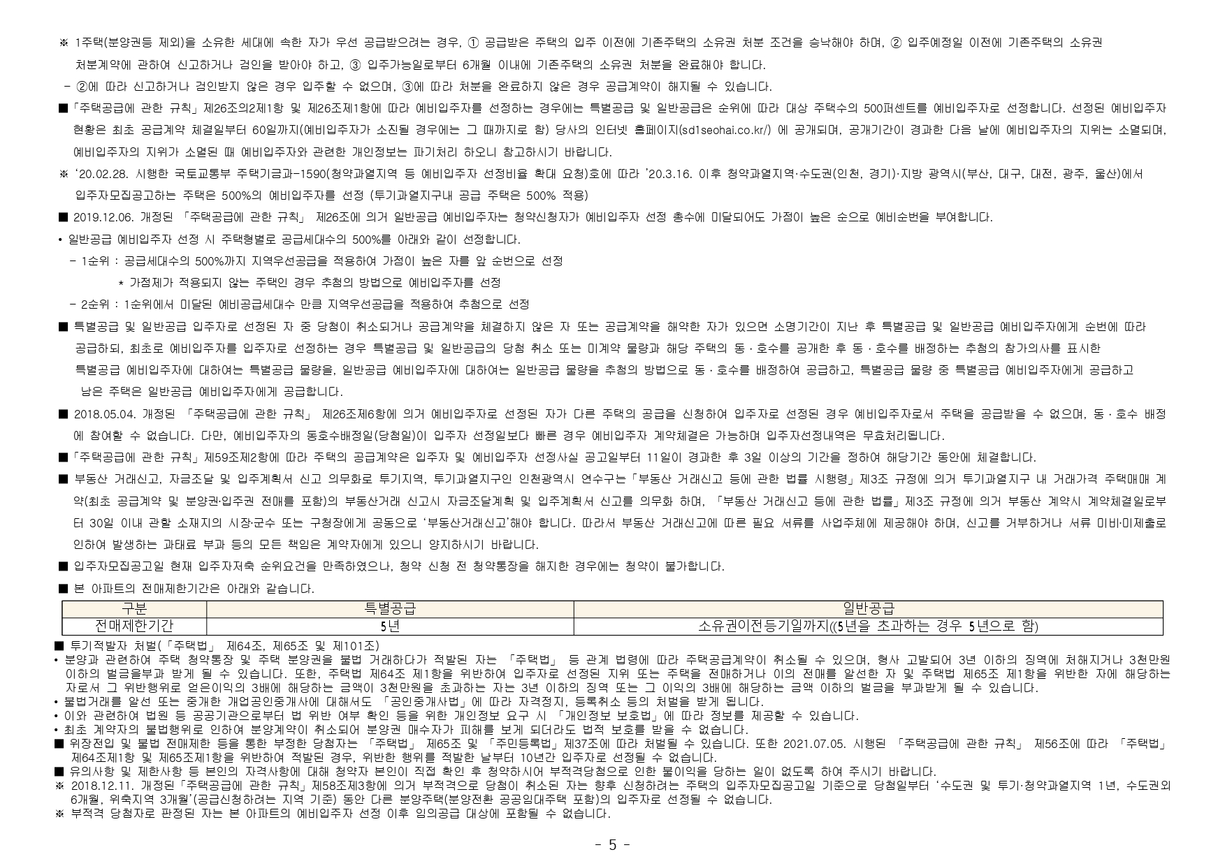 ■ 본 아파트의 당첨자로 선정 시 당첨자 및 세대에 속한 자는 당첨일로부터 향후 5년간 투기과열지구 및 청약과열지역에서 공급하는 주택의 1순위 청약접수가 제한되오니 유의하시기 바랍니다.