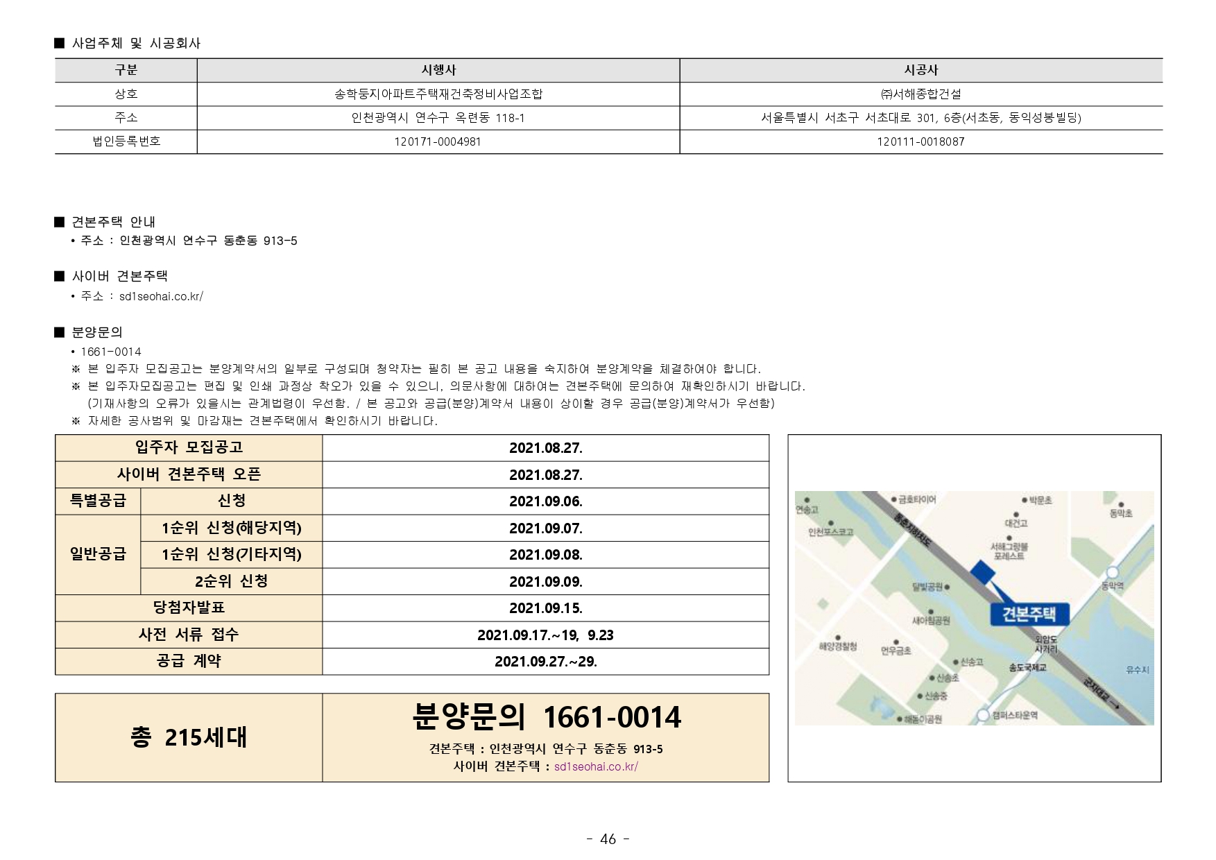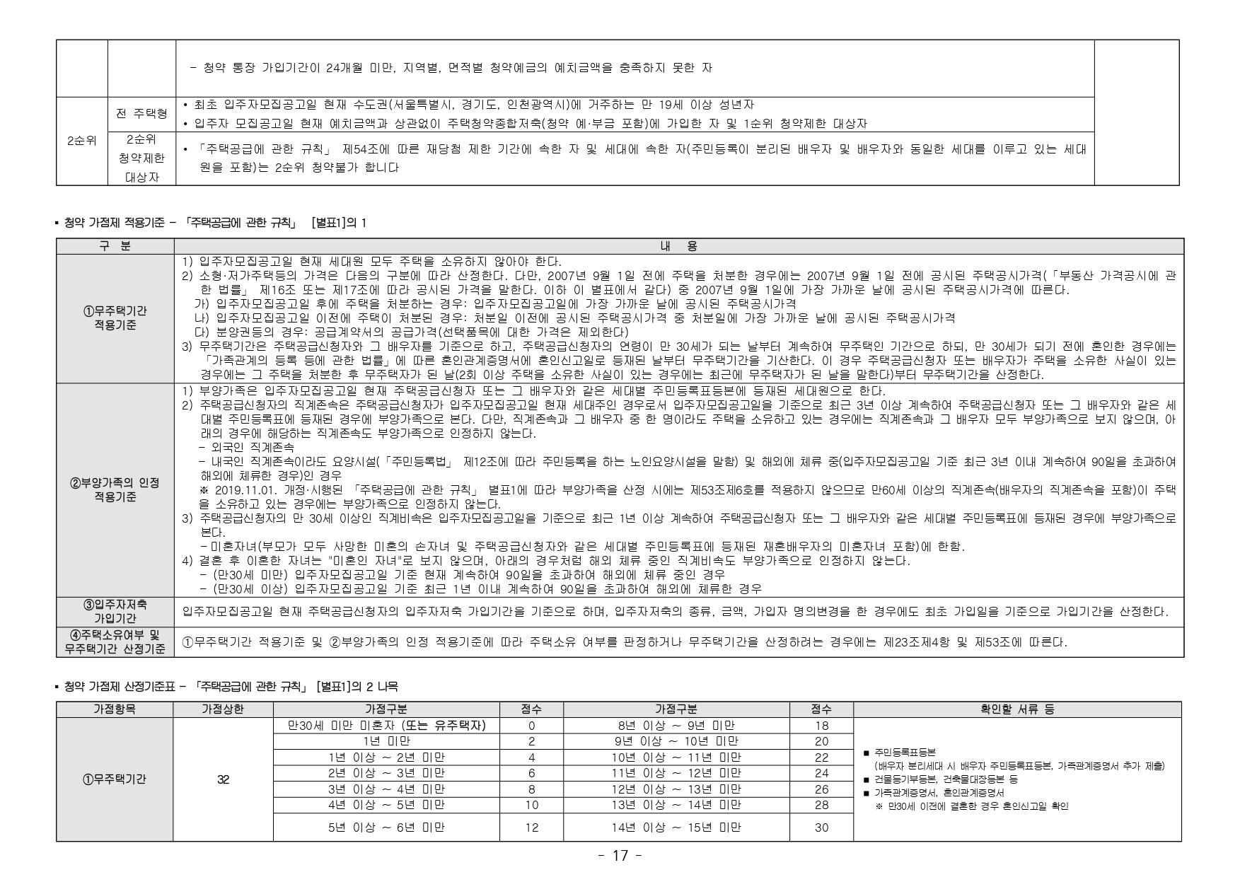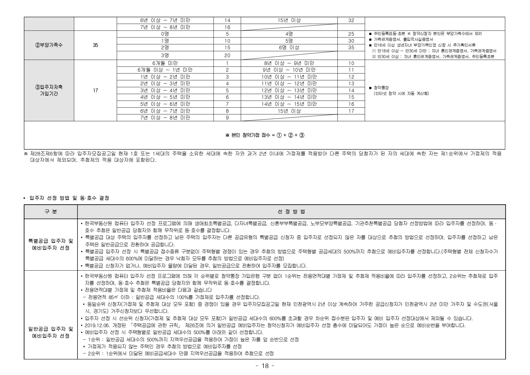 ■ 해당 주택건설지역(인천광역시 연수구)은 「주택법」 제63조 및 제63조의2에 의한 투기과열지구 및 청약과열지역으로서, 본 아파트는 「주택공급에 관한 규칙」에 따라 1주택 이상 소유한 세대에 속한 분은 1순 위 가점제 청약이 불가하며, 2주택 이상 소유한 세대에 속한 분은 1순위 자격에서 제외됩니다.