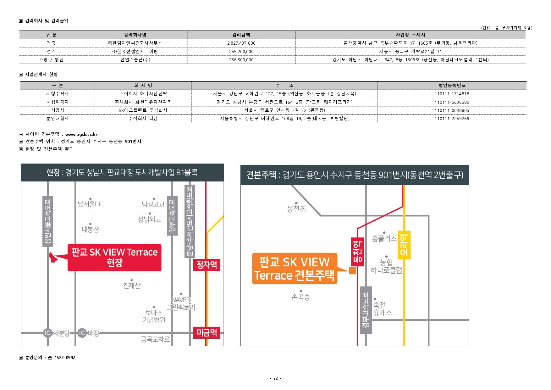 ■ ‘판교 SK VIEW Terrace’는 상담전화(1522-0992) 등을 통해 본 입주자모집공고의 내용과 관련하여 자세한 안내가 이루어지도록 상담을 진행하고 있으나, 간혹 개개인의 다양하고 복잡한 상황에 따라 정확하지 않은 정보제공 및 착오 안 내가 이루어지는 경우가 있으니 청약자께서는 자세한 내용을 반드시 견본주택 및 홈페이지 방문을 통해 확인하시기 바랍니다.