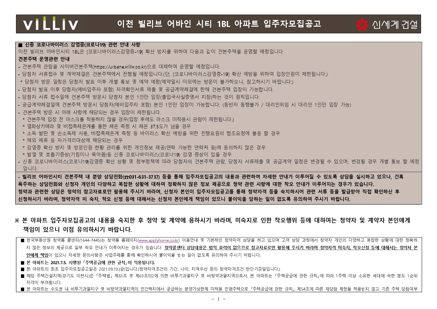 이천 빌리브 어바인시티 1BL / 2BL 아파트 입주자 모집공고입니다.