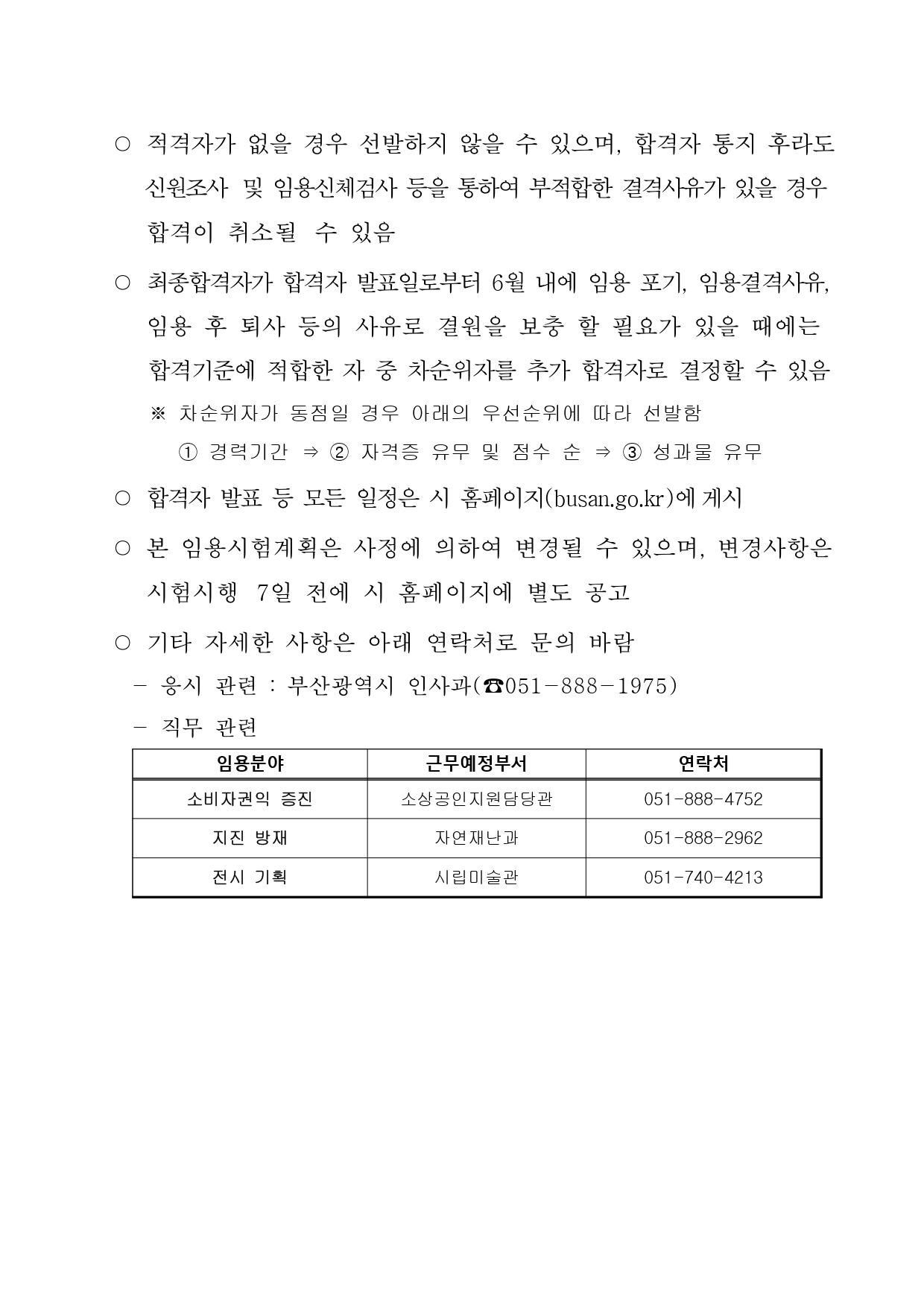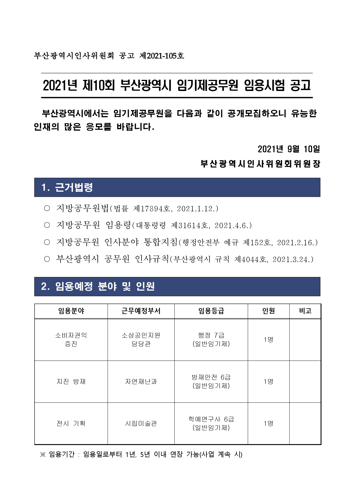 부산광역시에서는 임기제공무원을 다음과 같이 공개모집하오니 유능한 인재의 많은 응모를 바랍니다.