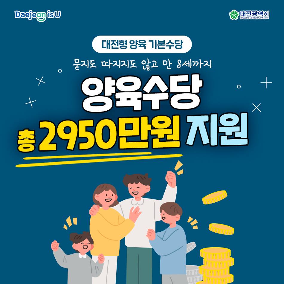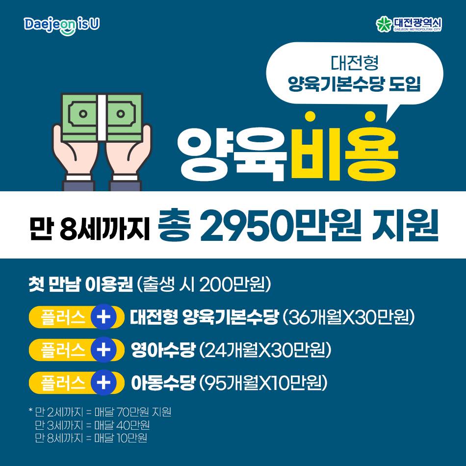 ‘대전형 양육기본수당’으로 출생 후 3년간 매달 30만 원을 지급해드립니다!