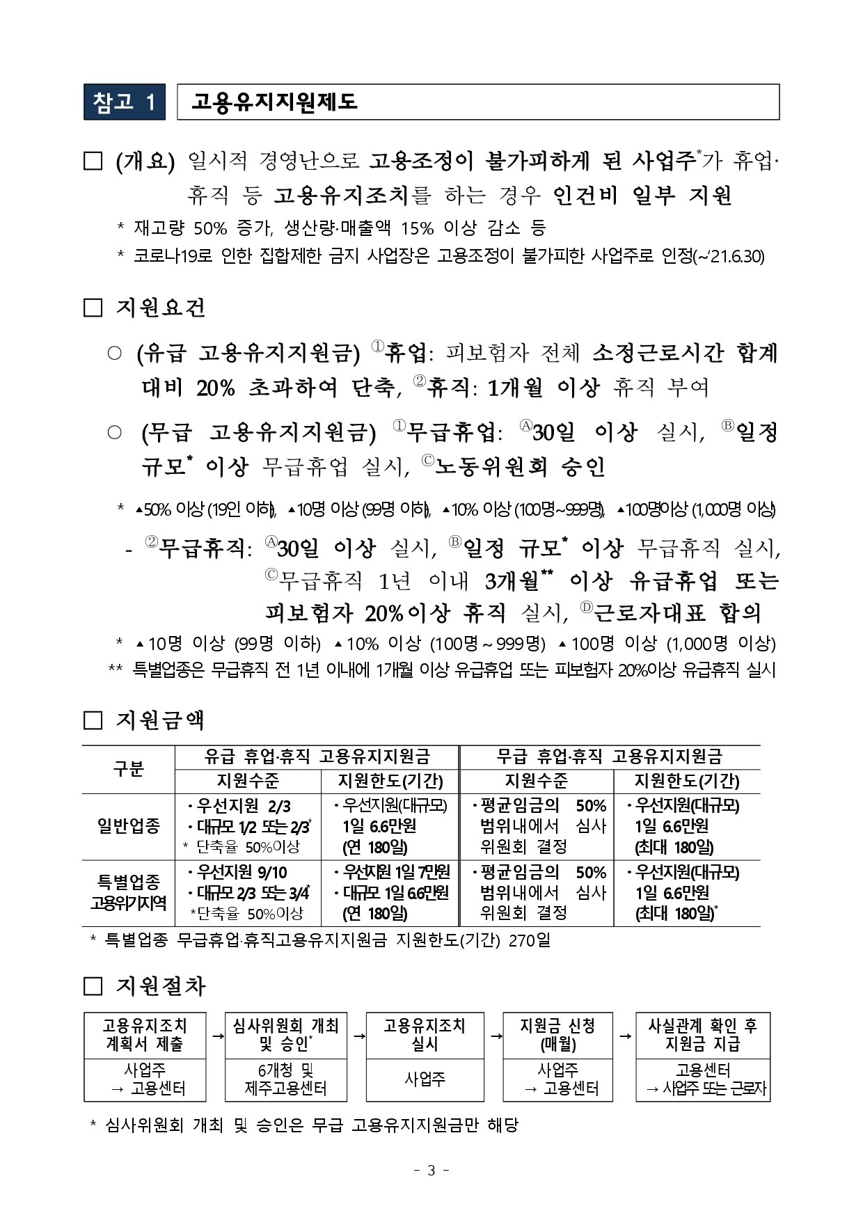 이에 따라, 항공업.여행업 등 특별고용지원 업종 사업장들은 기존 지원 일수(270일)에 30일을 추가하여 2021년에 최대 300일간 유급휴업·휴직 지원을 받을 수 있게 되었다.