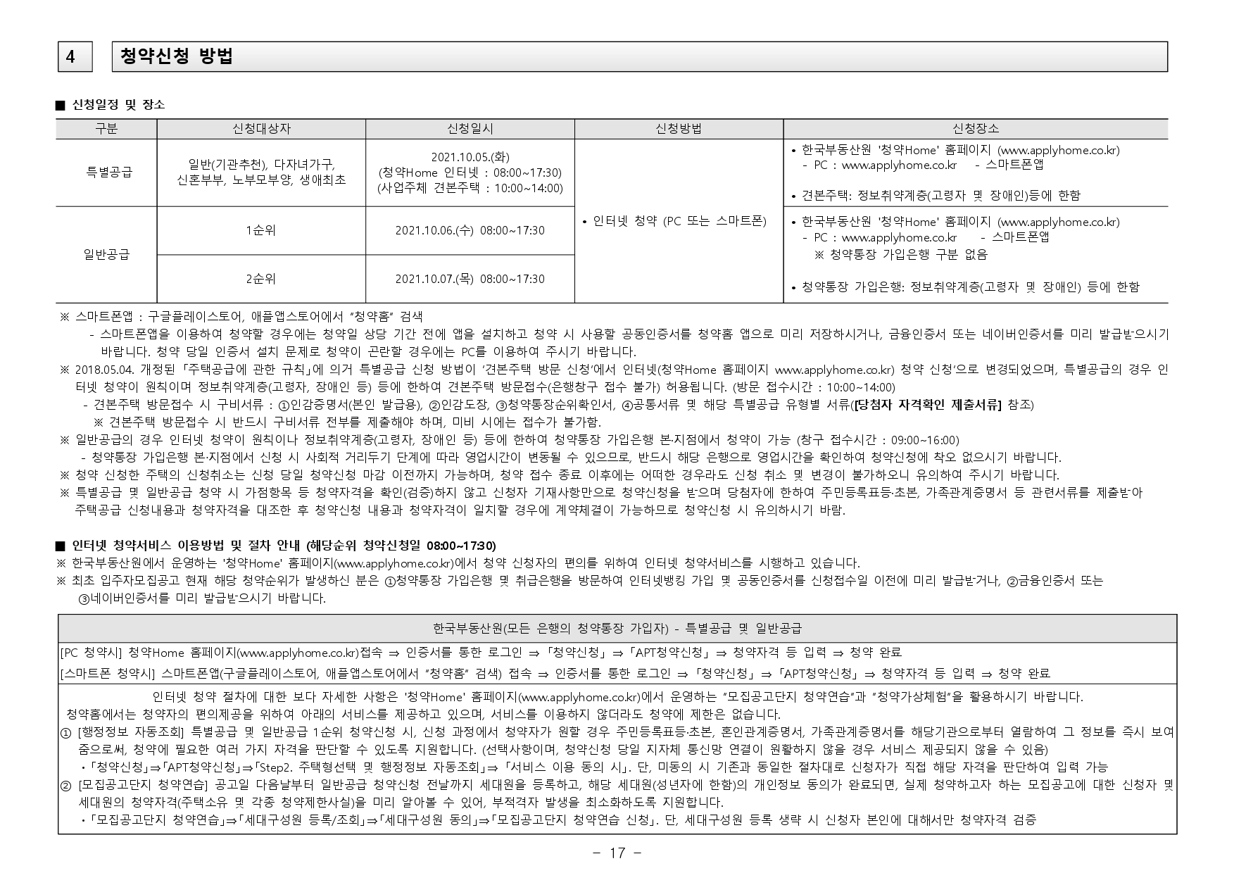 ■ 본 아파트의 최초 입주자모집공고일은 2021.09.23.입니다.(청약자격조건의 기간, 나이, 지역우선 등의 청약자격조건 판단기준일입니다.)