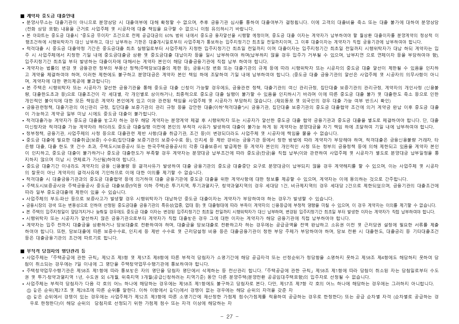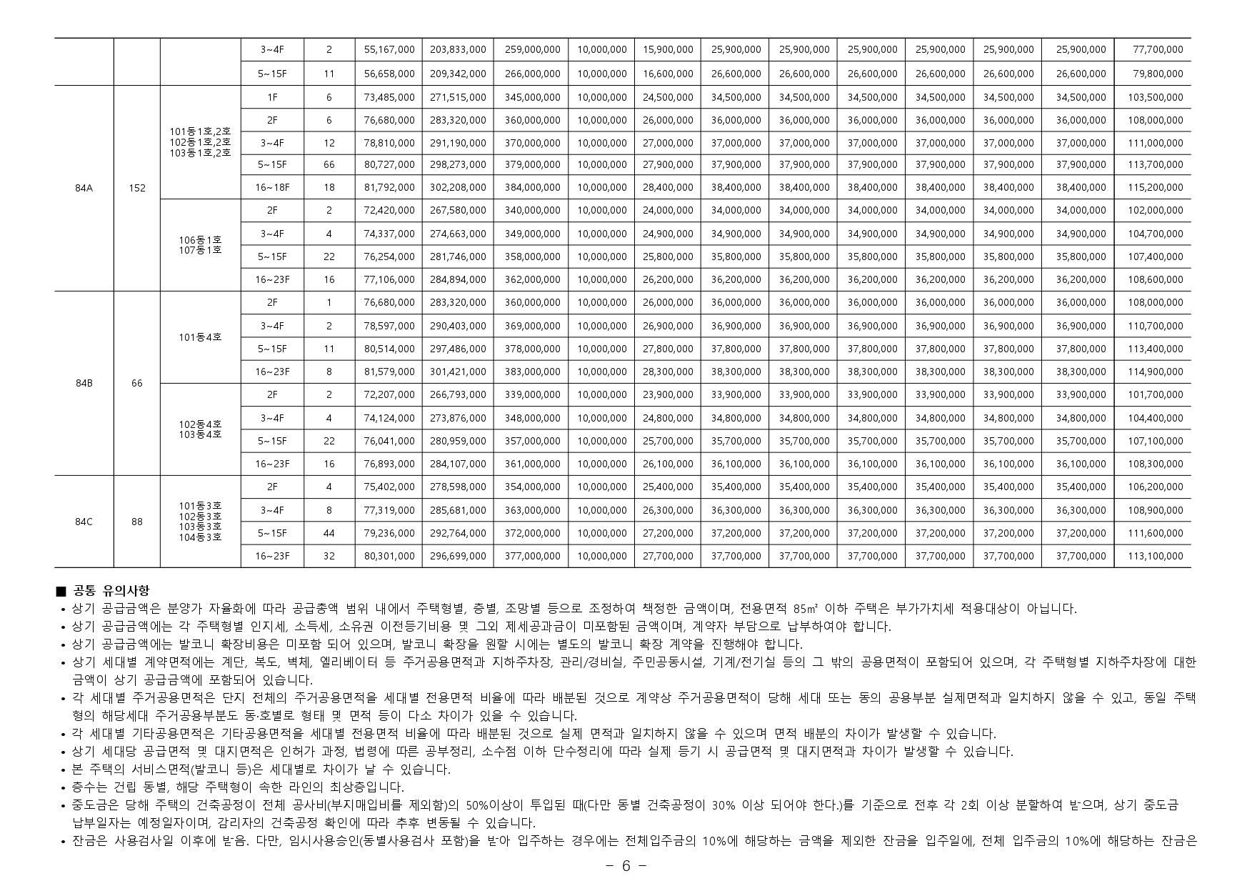 ■ 본 아파트의 당첨자로 선정 시 당첨자 및 세대에 속한 자는 당첨일로부터 향후 5년간 투기과열지구 및 청약과열지역에서 공급하는 주택의 1순위 청약접수가 제한되오니 유의하시기 바랍니다.