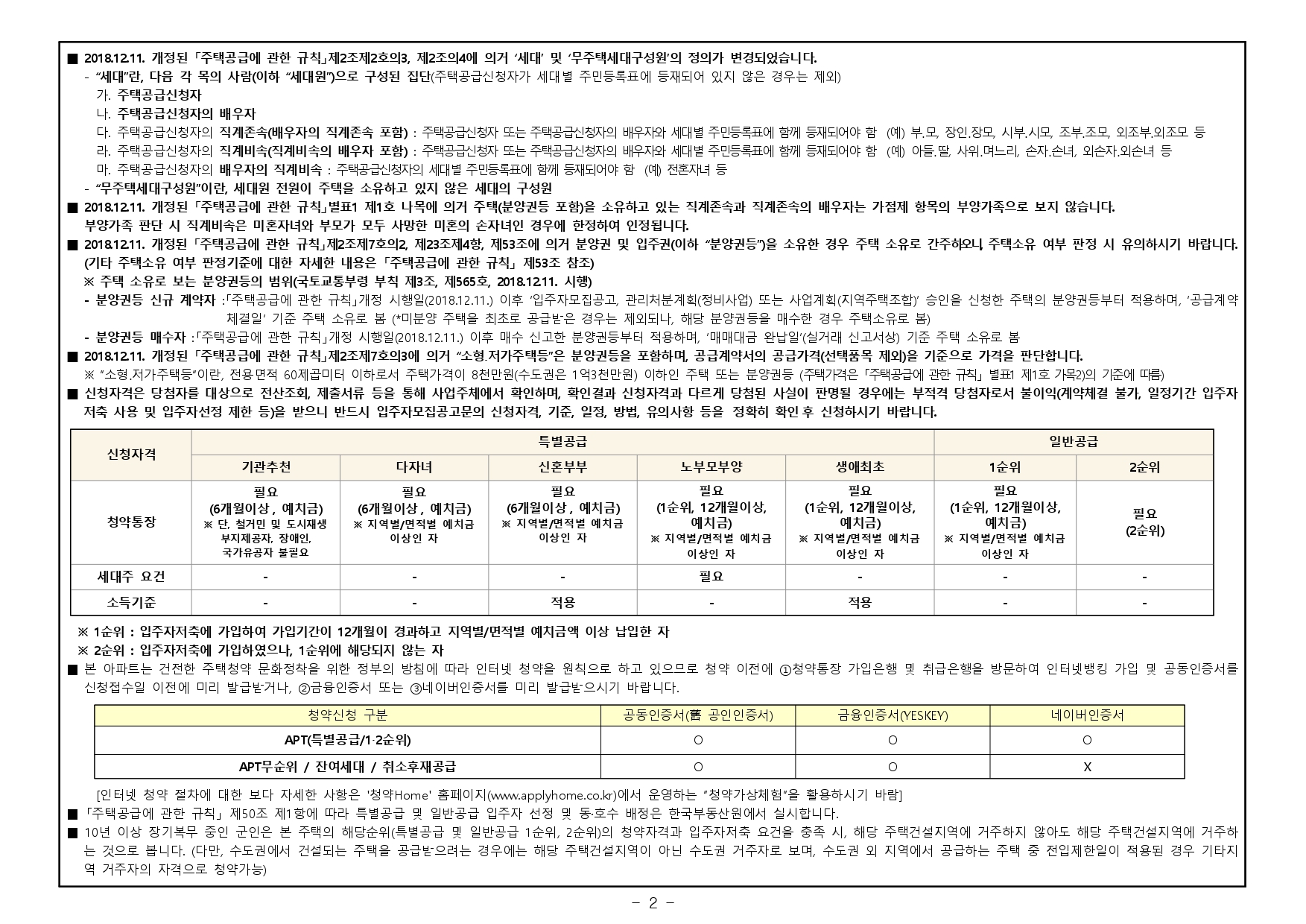 ■ 해당 주택건설지역(가평군)은 「주택법」 제63조 및 제63조의2에 의한 비투기과열지구 및 비청약과열지역으로서, 본 아파트는 「주택공급에 관한 규칙」에 따라 1주택 이상 소유한 세대에 속한 분도 1순위 자격 이 부여됩니다.