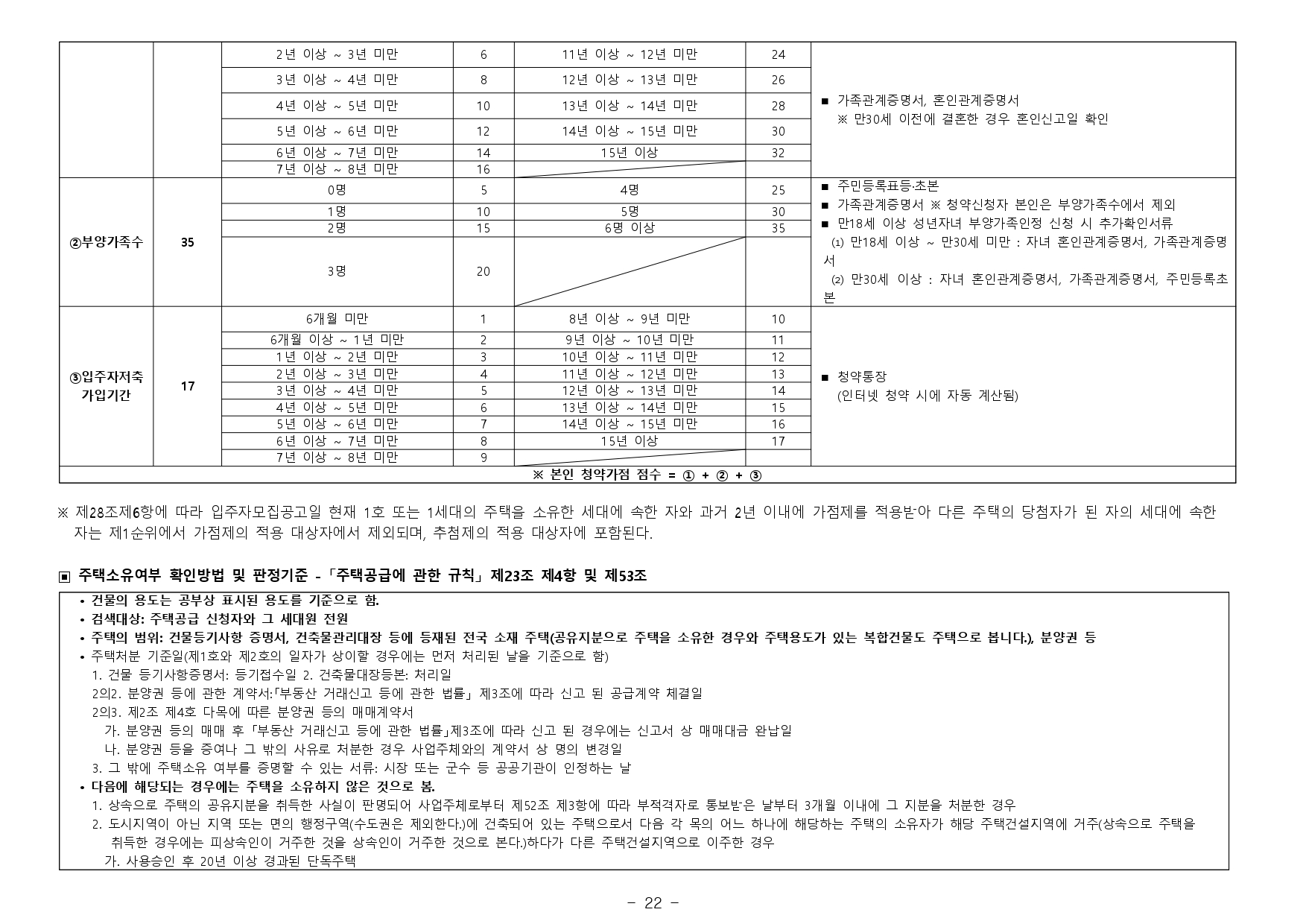 ■ 가점제 당첨 제한 : 2017.09.20. 개정된 「주택공급에 관한 규칙」 제28조제6항제2호에 의거 본 주택에 가점제로 당첨되신 분은 당첨일로부터 2년간 가점제 당첨 제한자로 관리되오니, 향후 당첨자 본인 및 세대원이 가점제가 적용되는 민영주택에 청약하는 경우 가점제 제한사항 적용여부를 확인하신 후 청약하시기 바랍니다. ('청약Home' 홈페이지(www.applyhome.co.kr) > 마이페이지 > 청약제한사항)