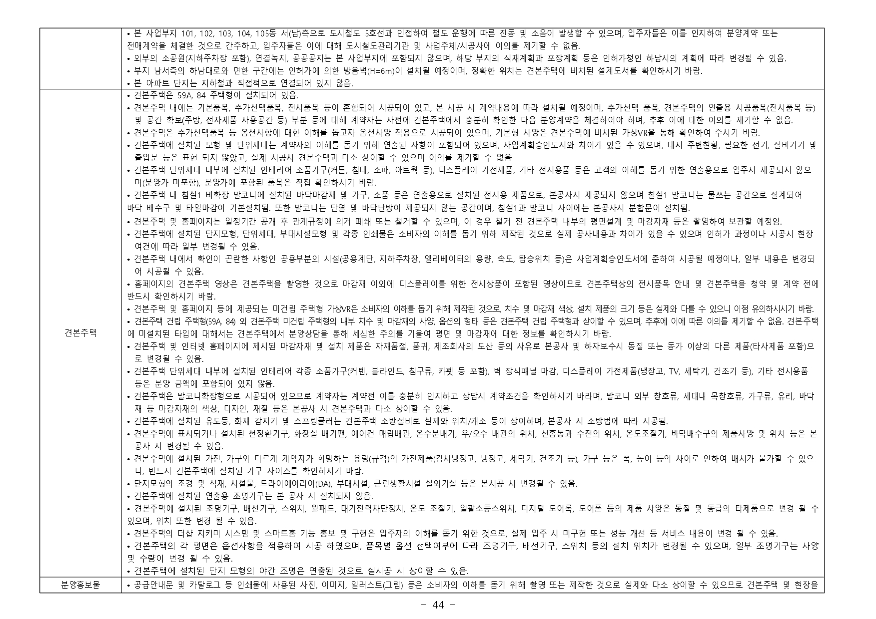 - 거주의무기간 : 본 아파트는「주택법」제57조의2 제1항 및「주택법 시행령」제60조의2 제1항에 의거하여 수도권에서 분양하는 분양가 상한제 적용 주택으로써 주택법령상 해당 주택의 최초 입주가능일부터 2년동안 계속하여 해당주택에 거주하여야 합니다. (다만, 해외 체류 등 대통령령으로 정하는 부득이한 사유가 있는 경우 그 기간은 해당 주택에 거주한 것으로 봅니다.)