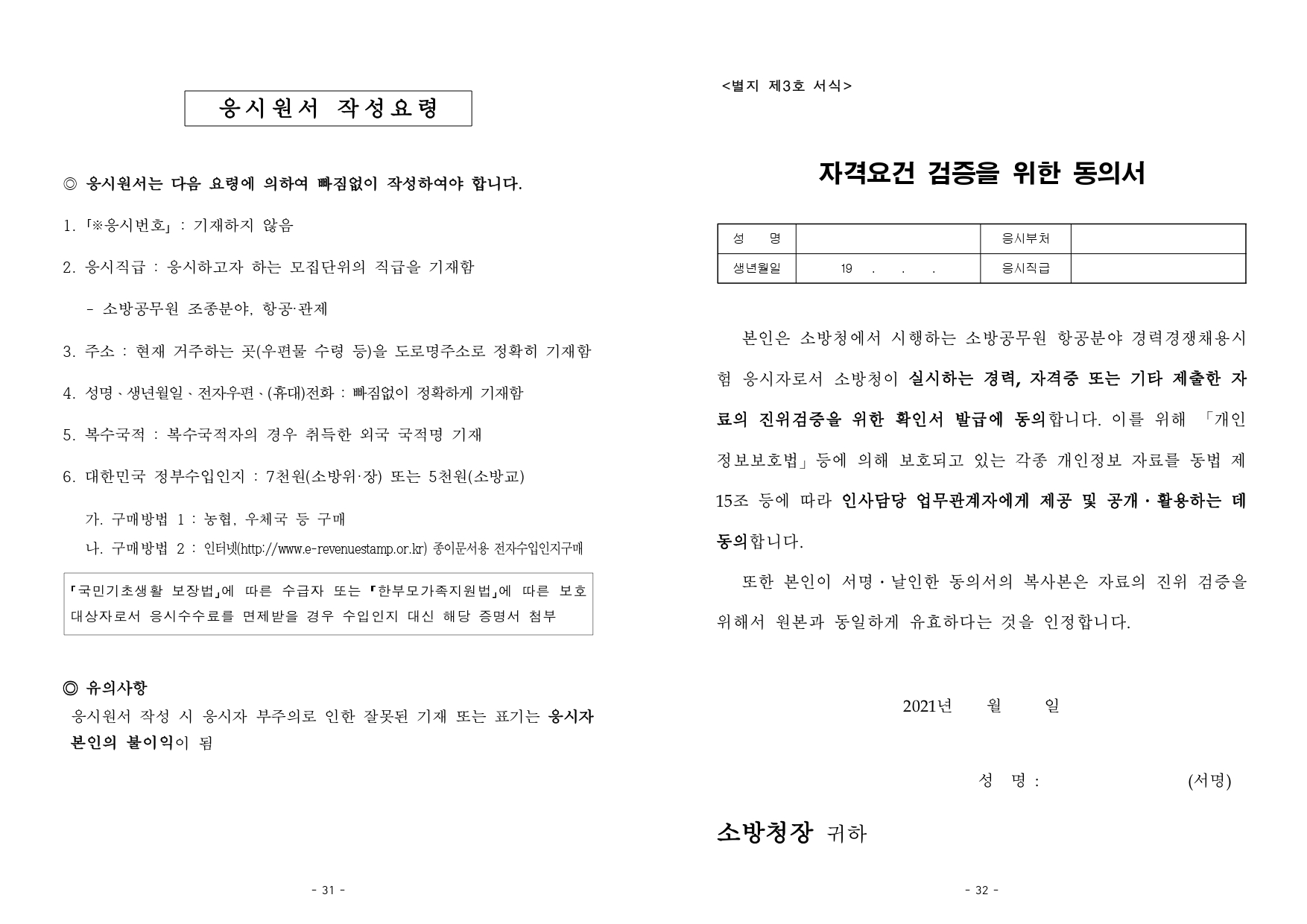 ※ 응시원서는 119고시(http://119gosi.kr) 및 소방청(http://www.nfa.go.kr)에서 내려받아 사용