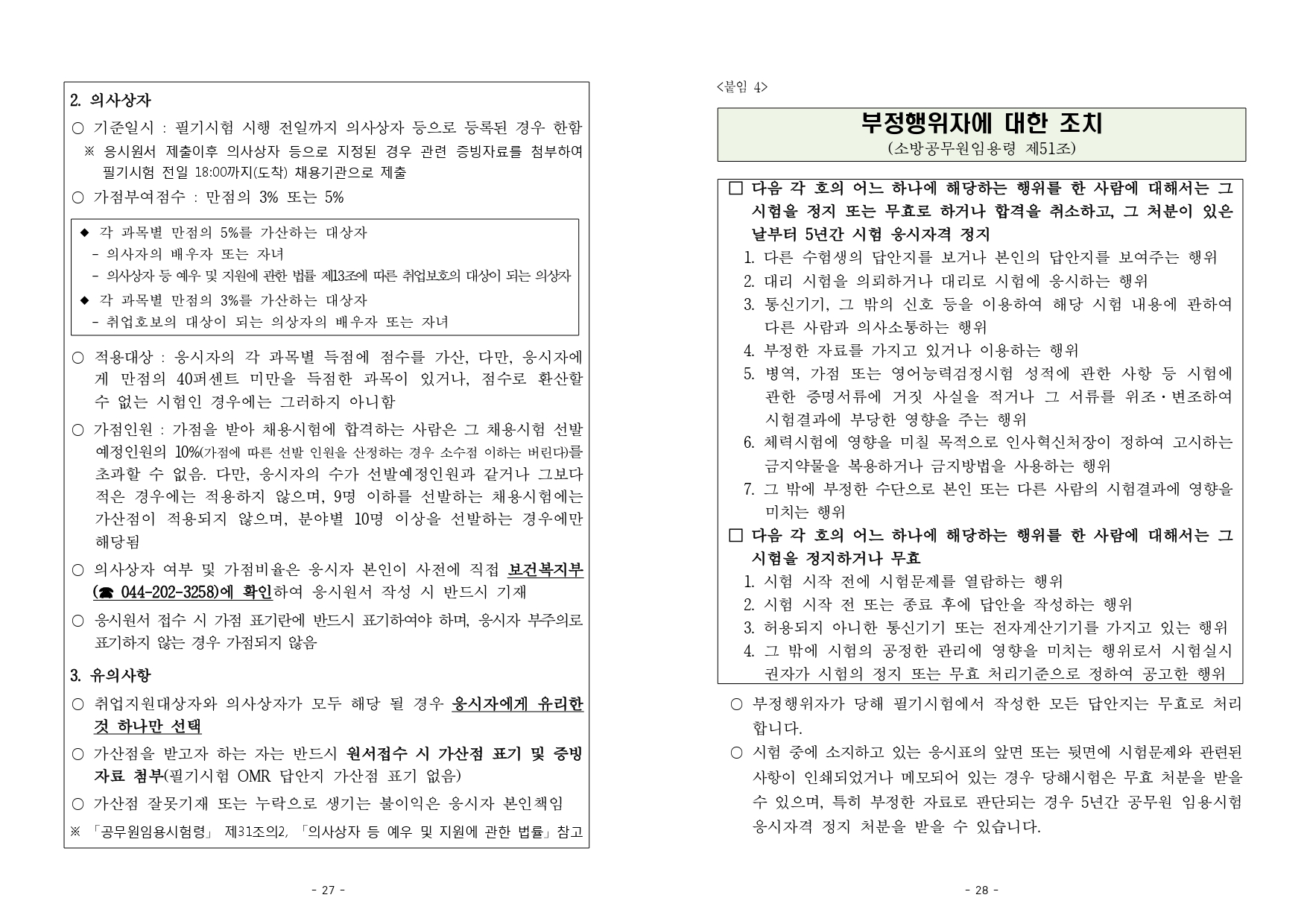 ※ 응시수수료 : 7,000원(소방위·소방장) / 5,000원(소방교)