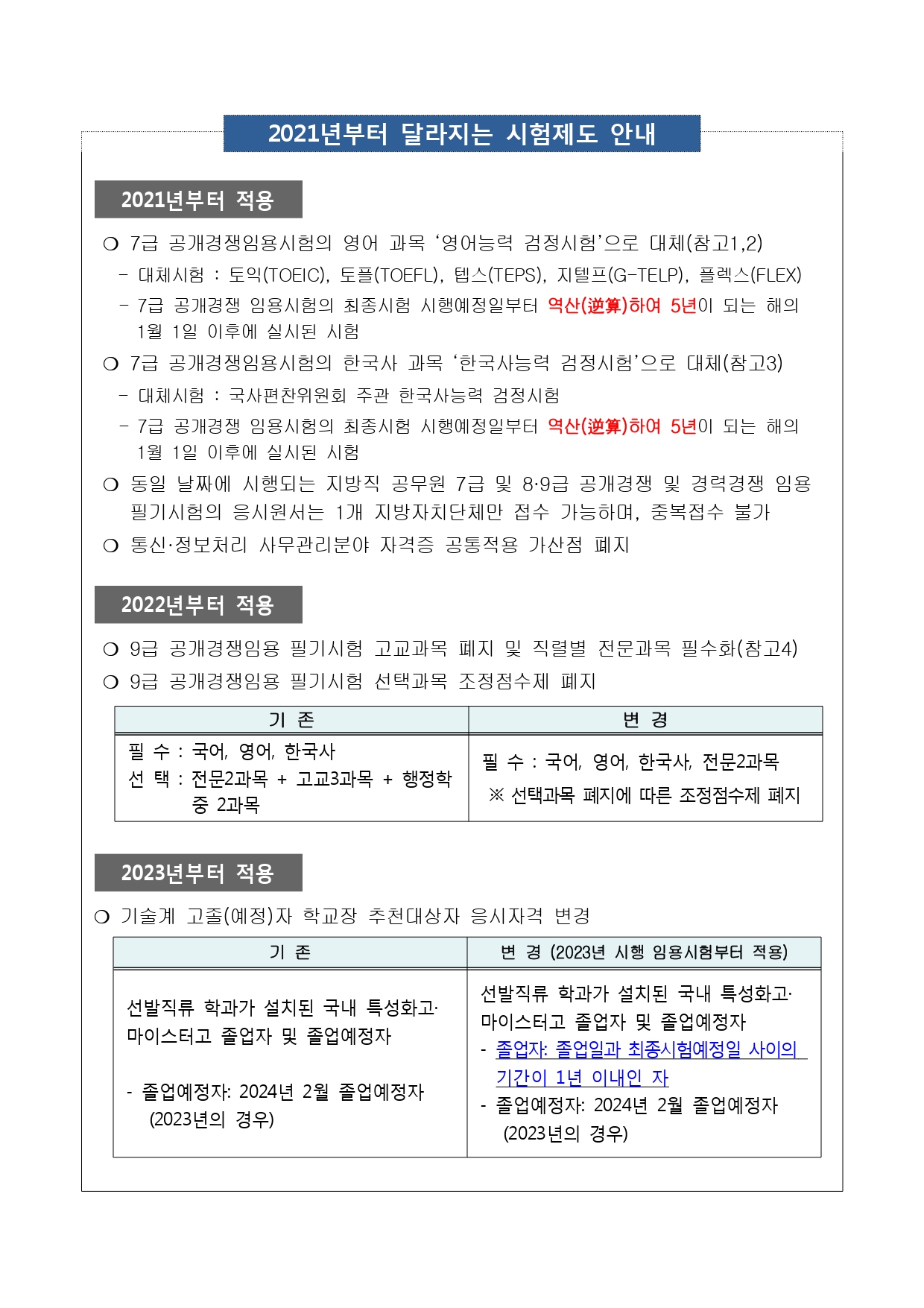 2021년~2023년 지방공무원 달라지는 시험제도 안내 종합본입니다.