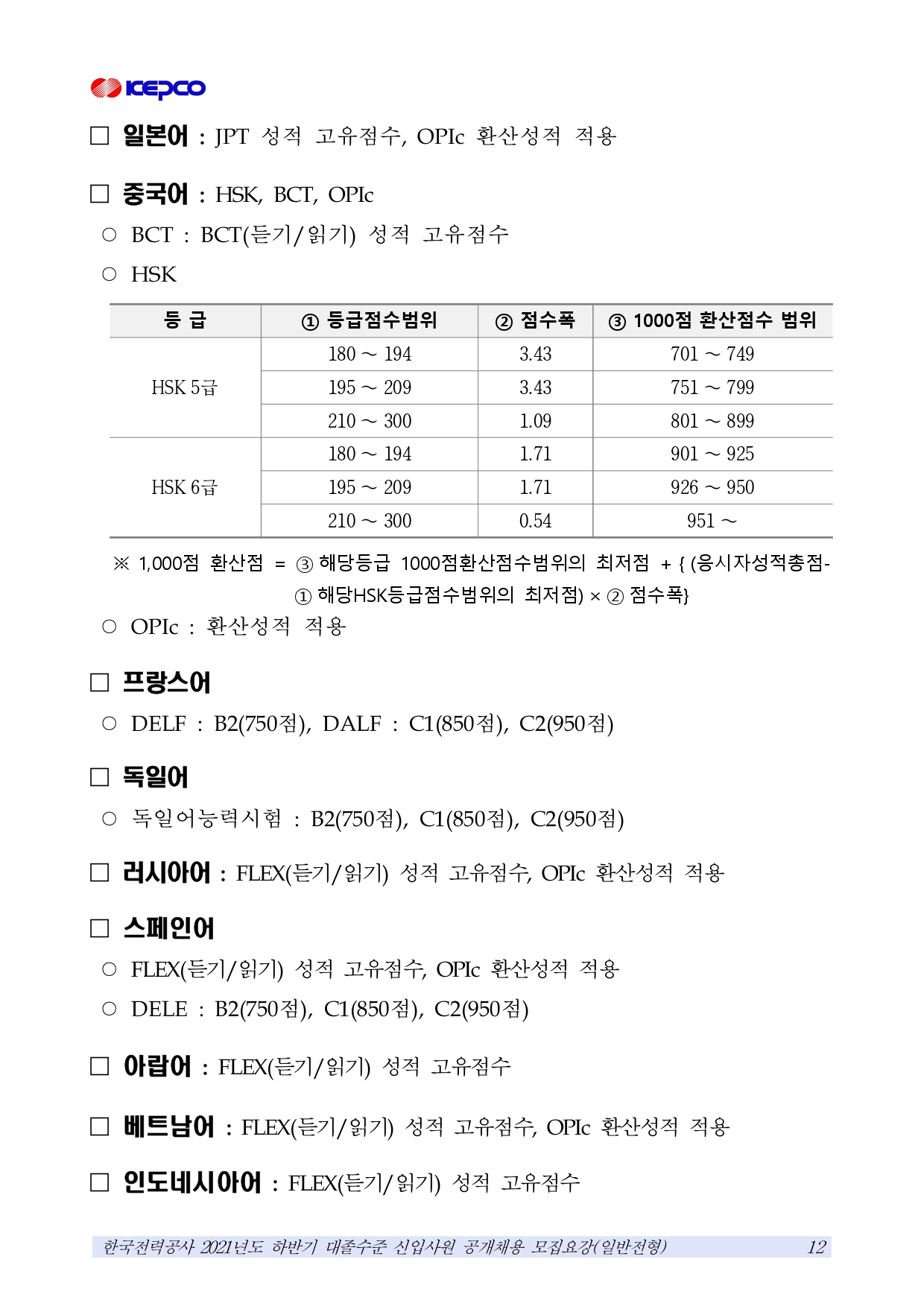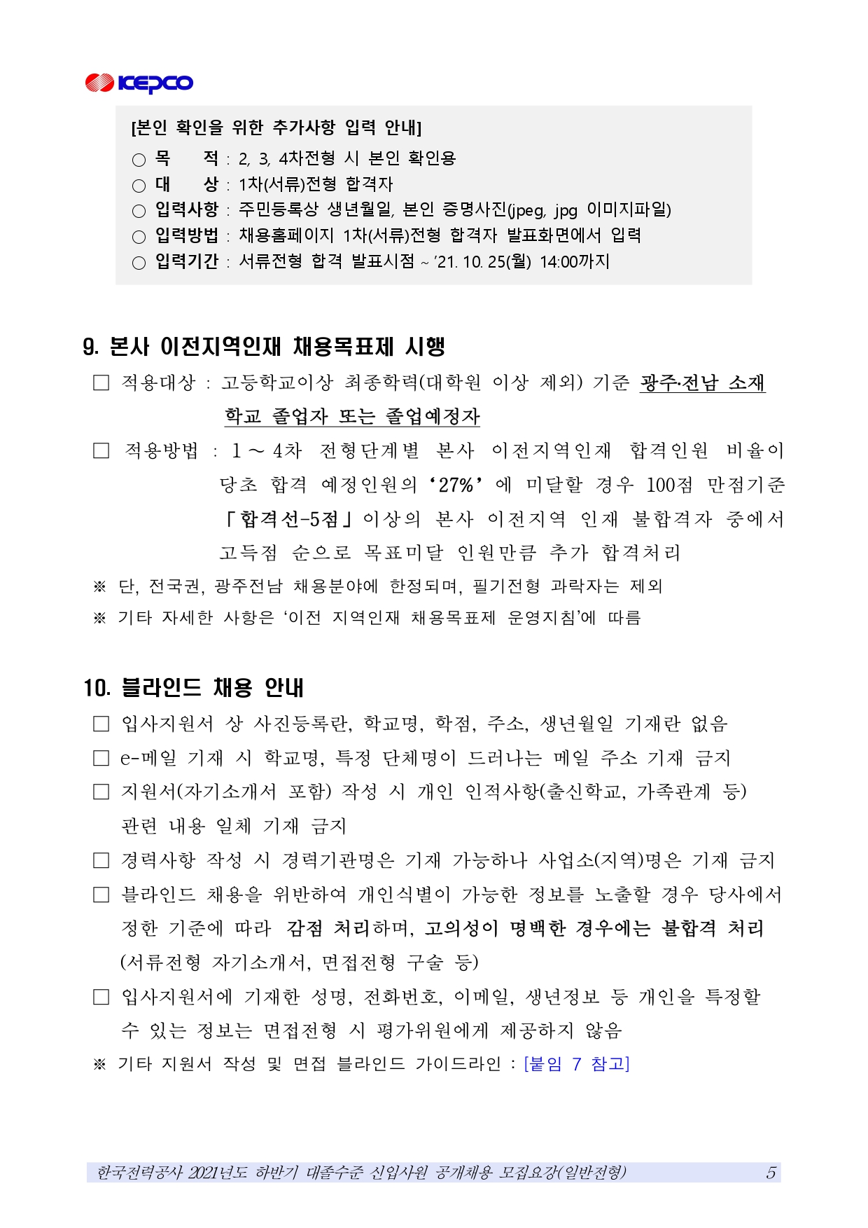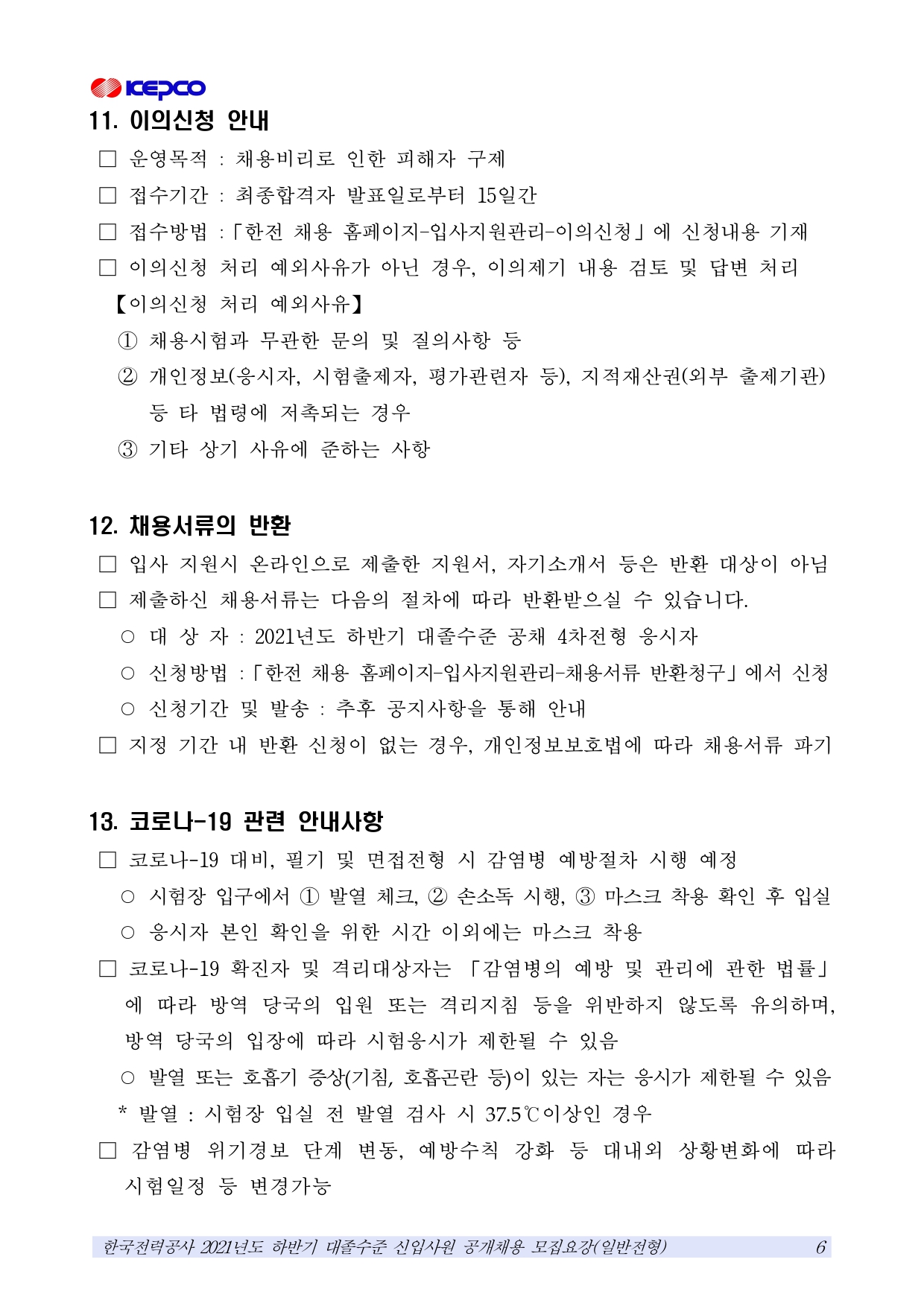 2021 하반기 한국전력공사 대졸수준 공개채용 공고(일반전형)(~10.13)입니다.