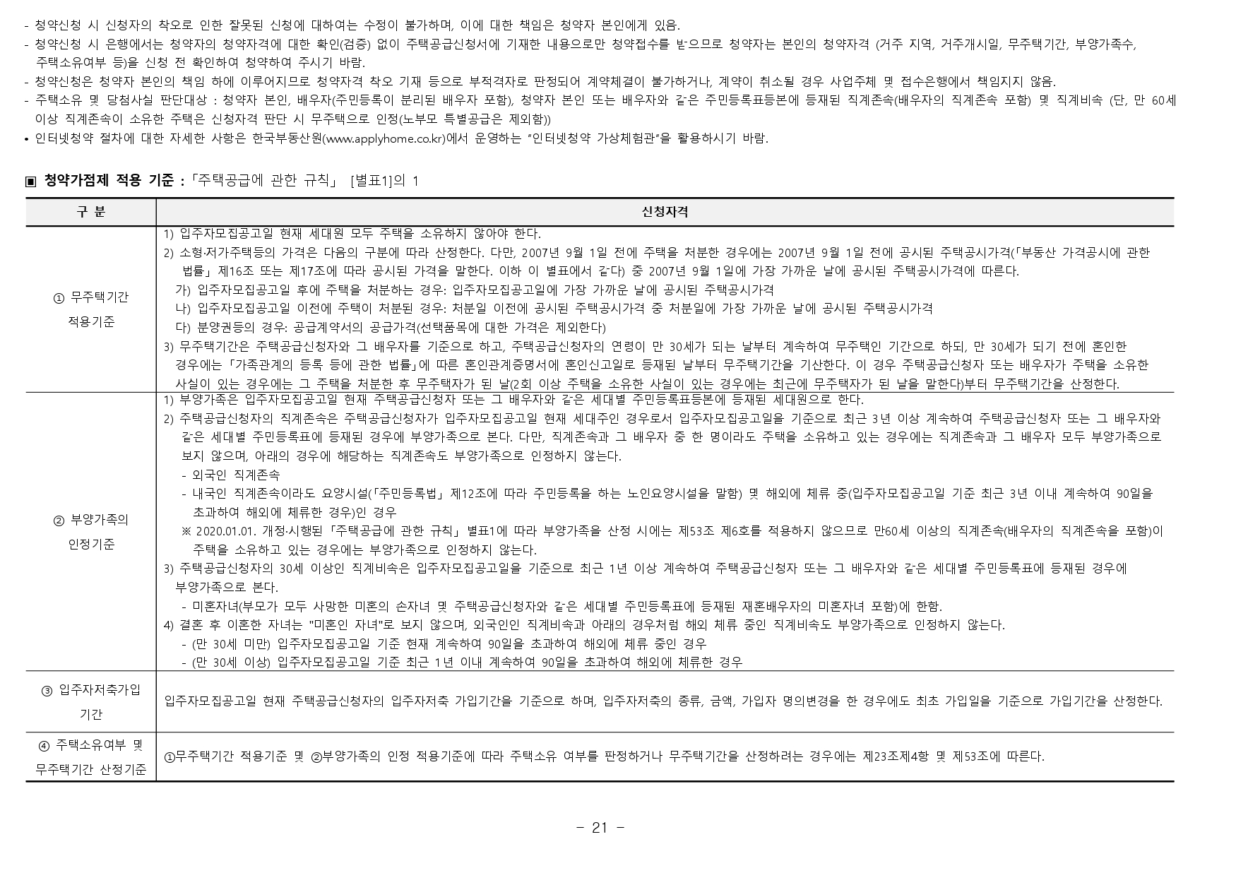 ▪ 본 아파트는 2021.07.05. 시행된 「주택공급에 관한 규칙」이 적용되며, 이 공고문에 명시되지 아니한 사항은 「주택법」, 「주택공급에 관한 규칙」등 관계법령에 따릅니다.