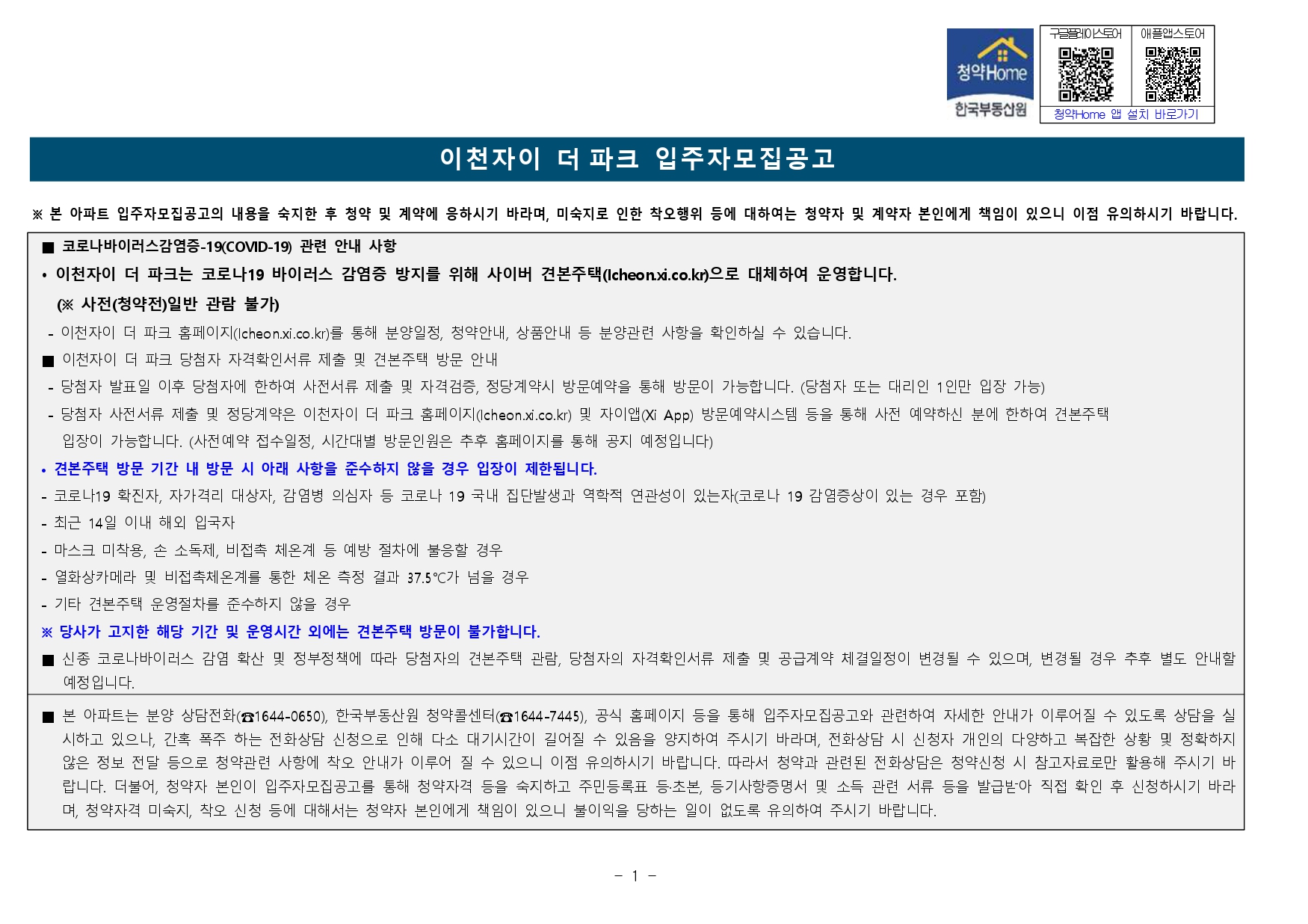 이천자이더파크 아파트 입주자 모집공고(2021.10.1)입니다.