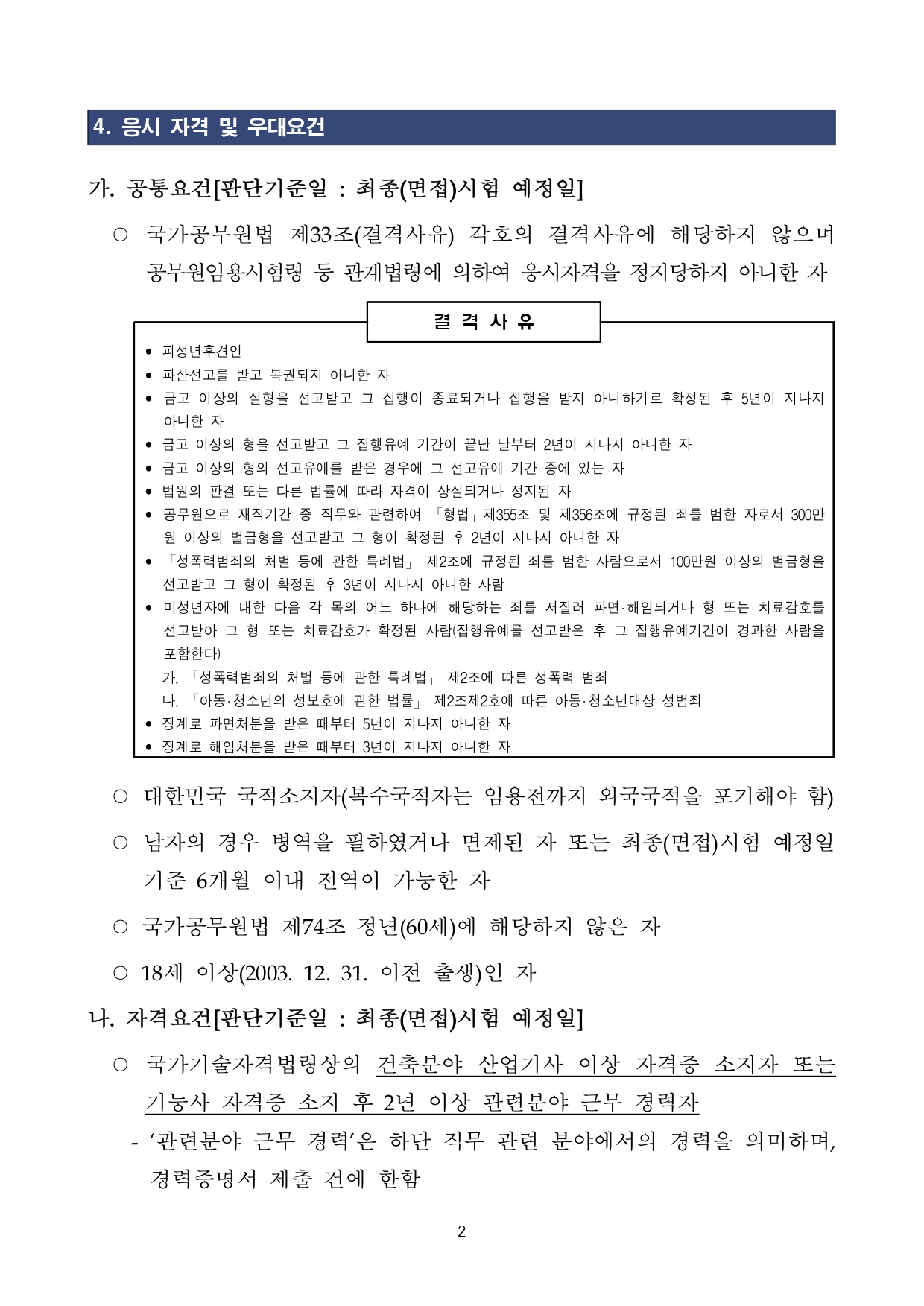 공무원임용시험령 제3조 및 제26조에 따라 우수 인재의 공직유치를 위하여 국가공무원 경력경쟁채용시험을 다음과 같이 공고하여 시행하오니 많은 응시 바랍니다.