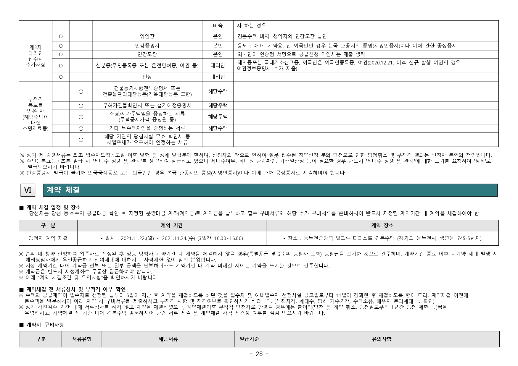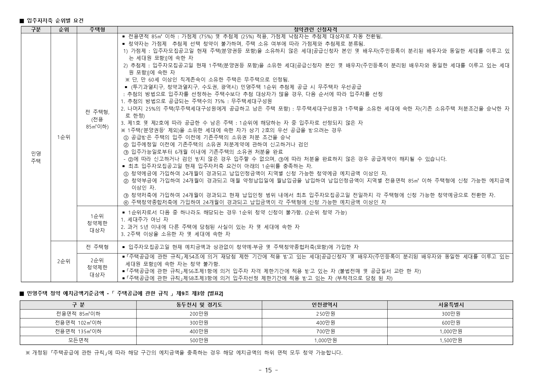 ■ 본 아파트는 최초 입주자모집공고일(2021.10.22.) 현재 동두천시에 거주하거나 수도권(경기도, 서울특별시, 인천광역시)에 거주(주민등록표등본 기준)하는 만19세 이상인 자 또는 세대주인 미성년자(자녀양육, 형제자매부양)[국내에서 거주하는 재외동포(재외국민, 외국국적 동포) 및 외국인 포함]의 경우 청약이 가능합니다. 다만 청약 신청자 중 같은 순위 내에 경쟁이 있을 경우 해당 주택건설지역인 동두천시 거주자가 우 선합니다.