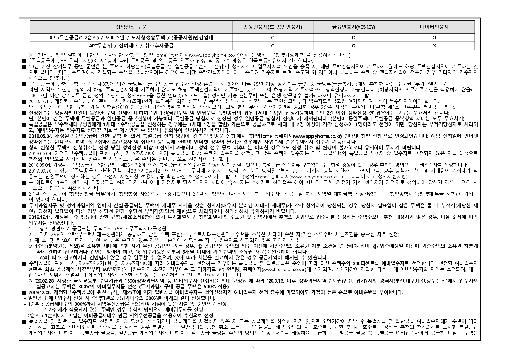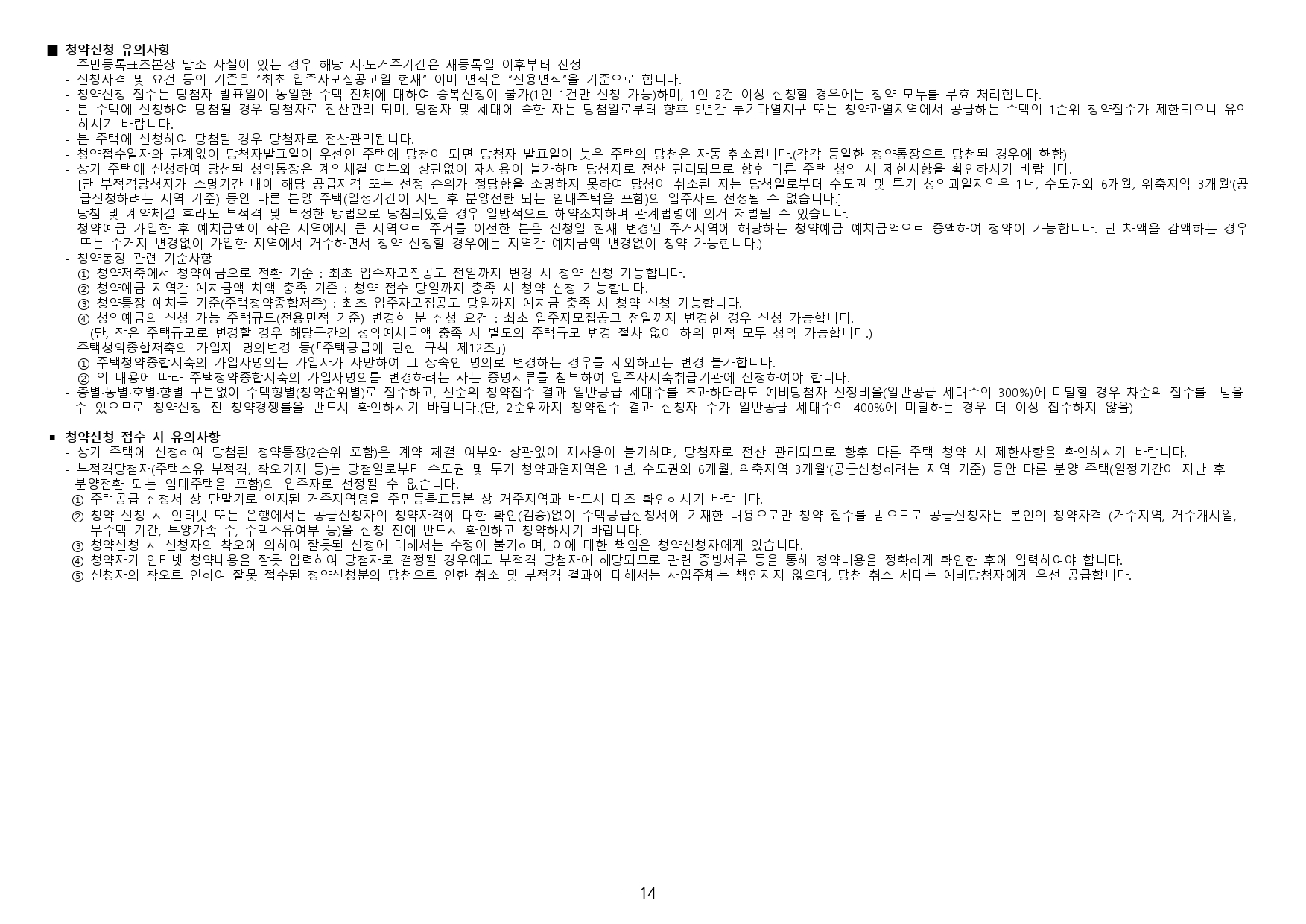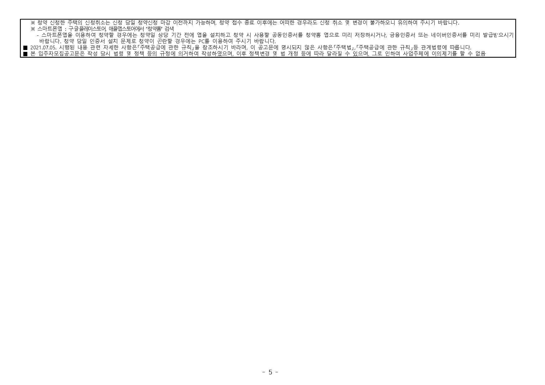 ■ 본 아파트의 당첨자로 선정 시 당첨자 및 세대에 속한 자는 당첨일로부터 향후 5년간 투기과열지구 및 청약과열지역에서 공급하는 주택의 1순위 청약접수가 제한되오니 유의하시기 바랍니다.