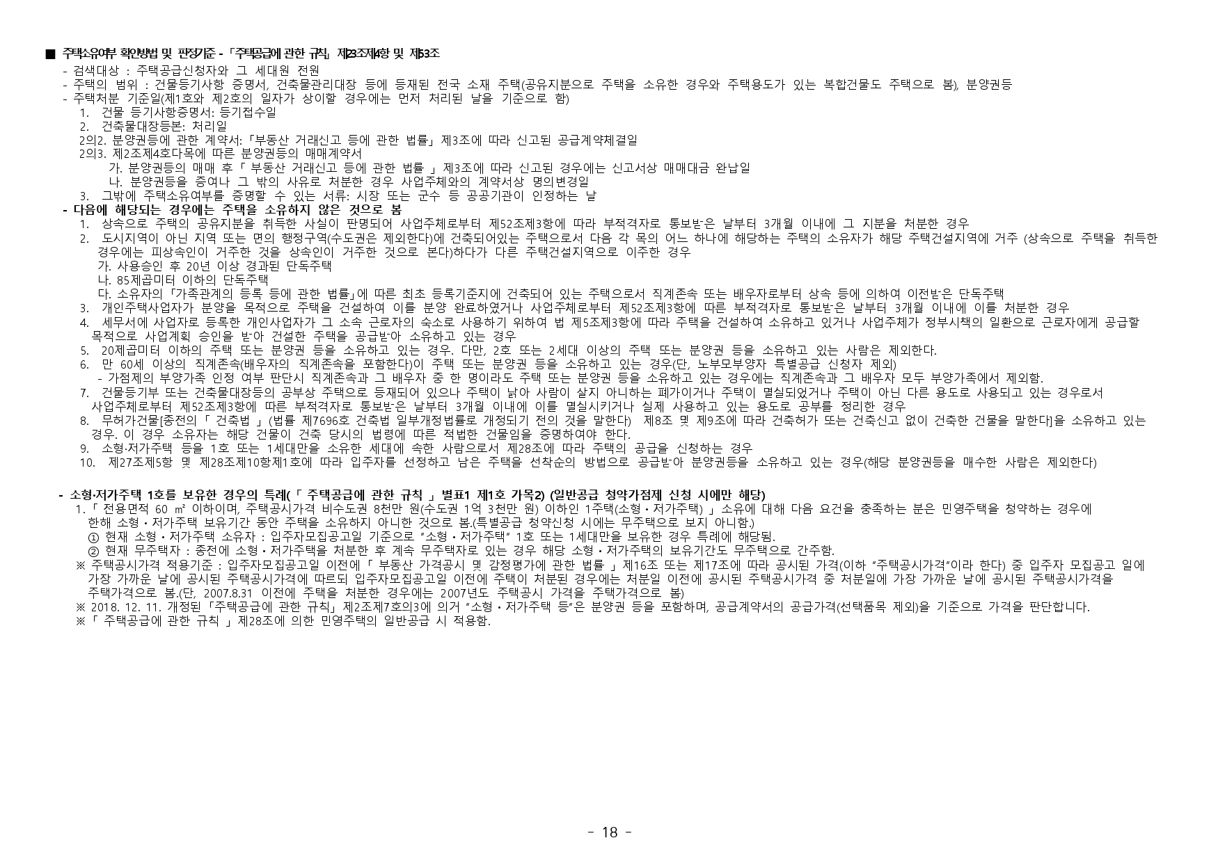 ■ 본 아파트 주택건설지역인 동두천시는 「주택법」 제63조 및 제63조의2에 의한 비투기과열지구 및 청약과열지역으로서, 본 아파트는 「주택공급에 관한 규칙」에 따라 1주택 이상 소유한 세대에 속한 분은 1순위 가 점제 청약이 불가하며, 2주택 이상 소유한 세대에 속한 분은 1순위 자격에서 제외됩니다. ※ 1순위 청약 제한 대상 : ① 세대주가 아닌 자 ② 과거 5년 이내에 다른 주택에 당첨된 자 및 그 세대에 속한 자 (전지역 해당, 모든 청약 대상자) ③ 2주택(분양권 등 포함) 이상을 소유한 자 및 그 세대에 속한 자