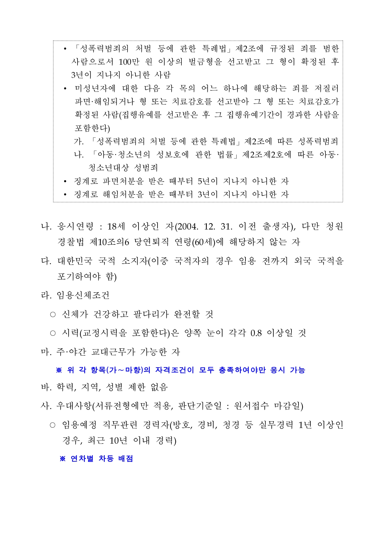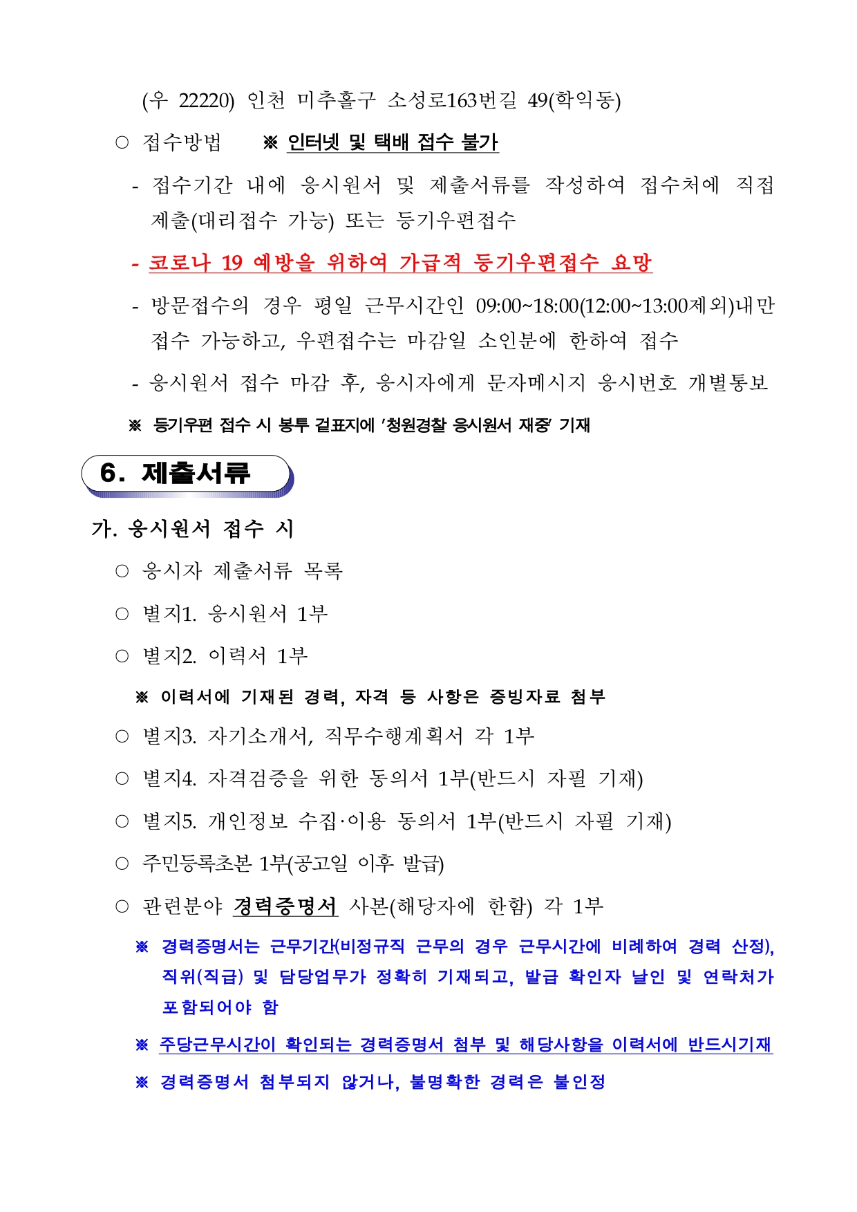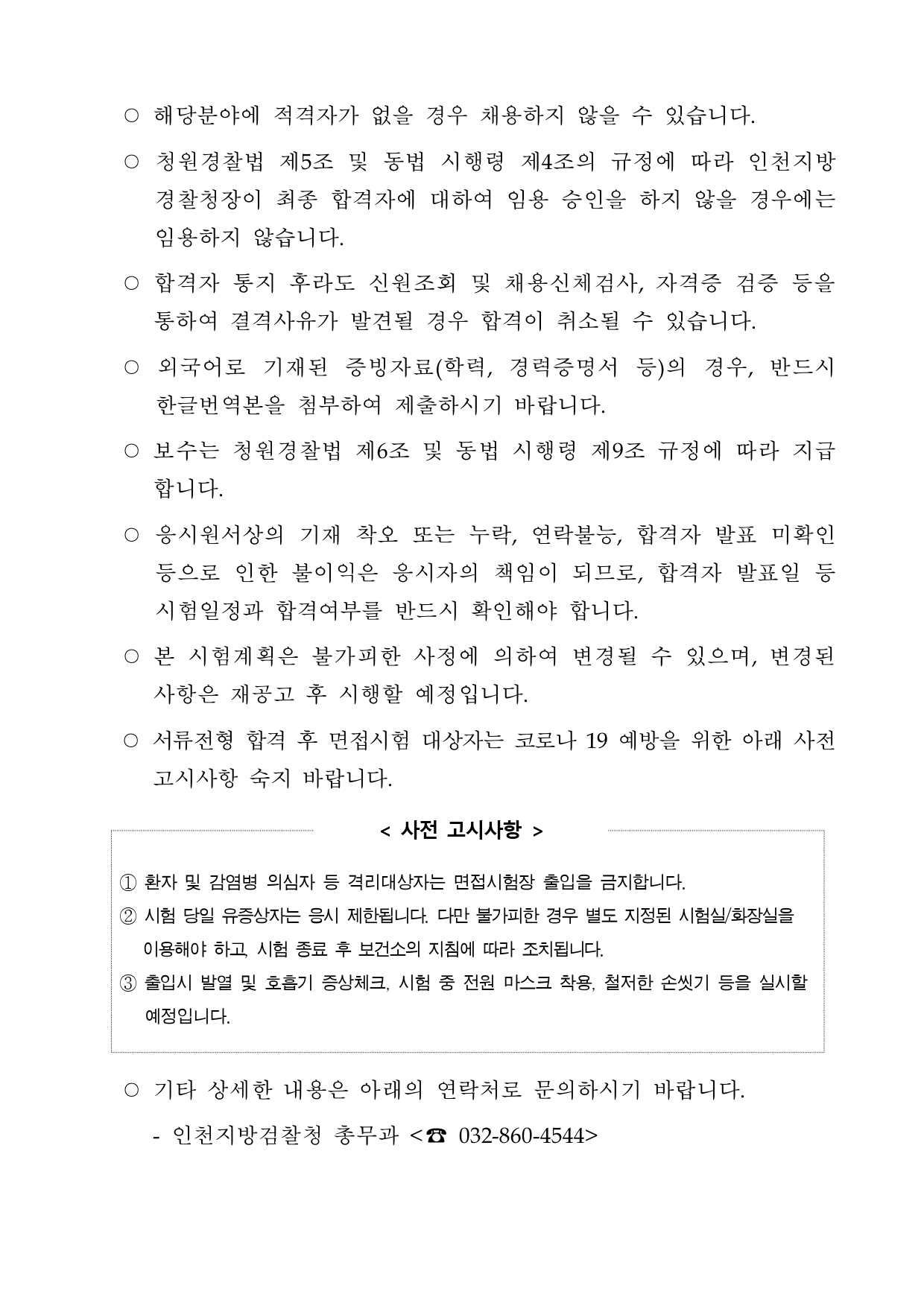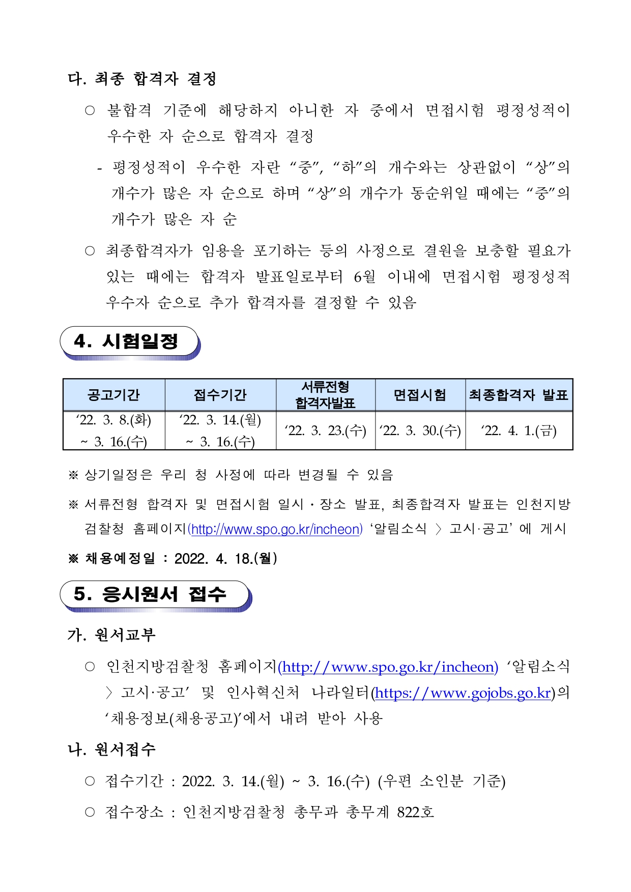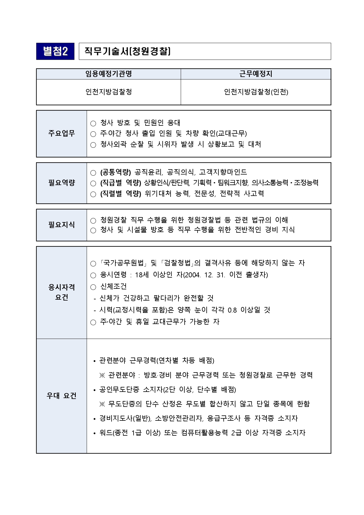 인천지방검찰청에서는 다음과 같이 청원경찰을 신규 채용하고자 하오니 유능한인재의 많은 지원 바랍니다.