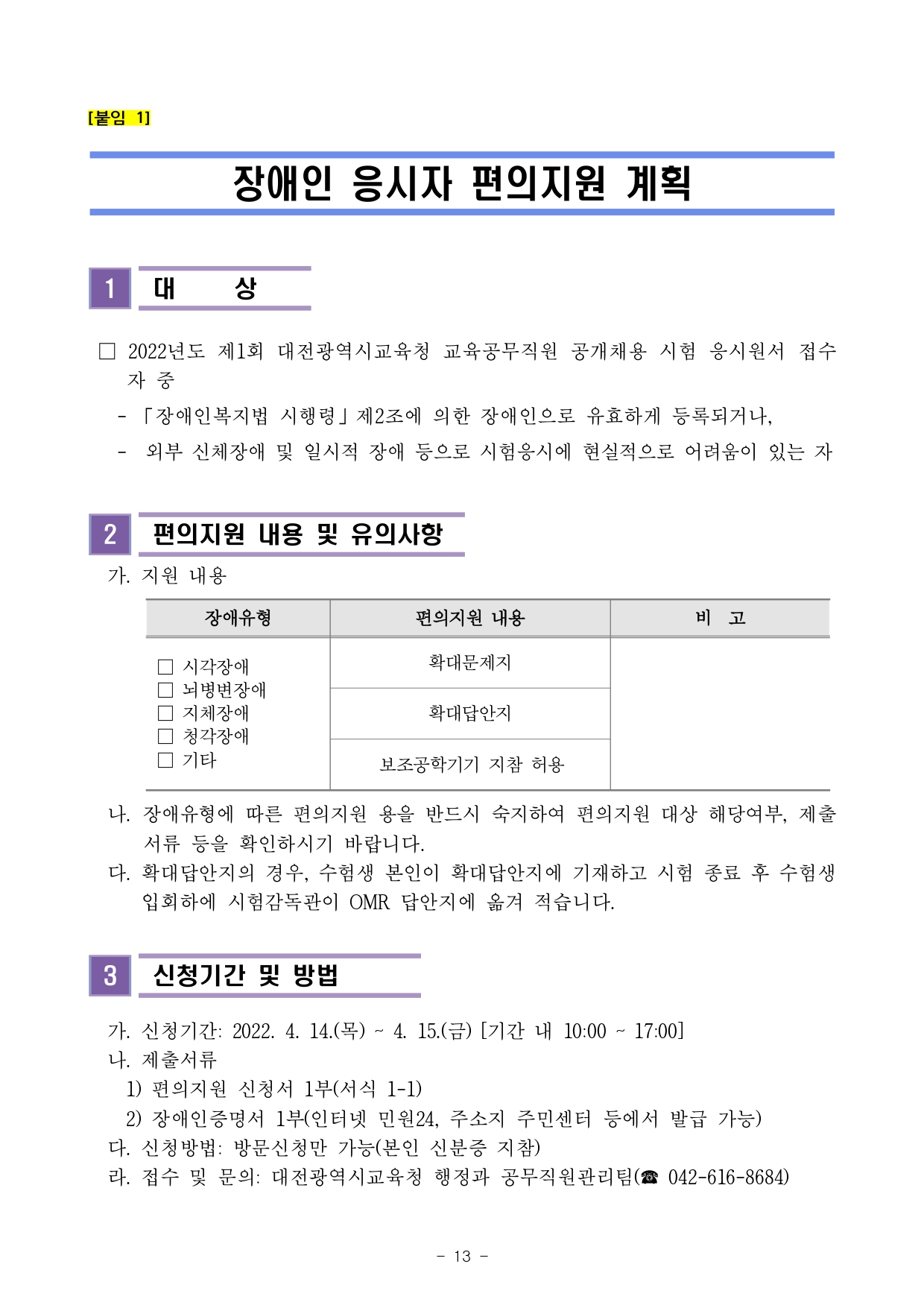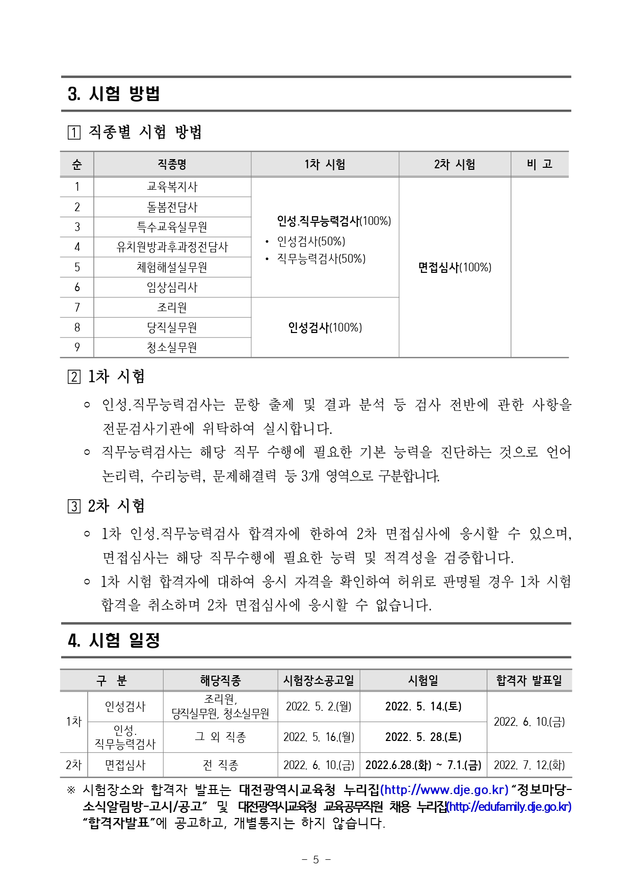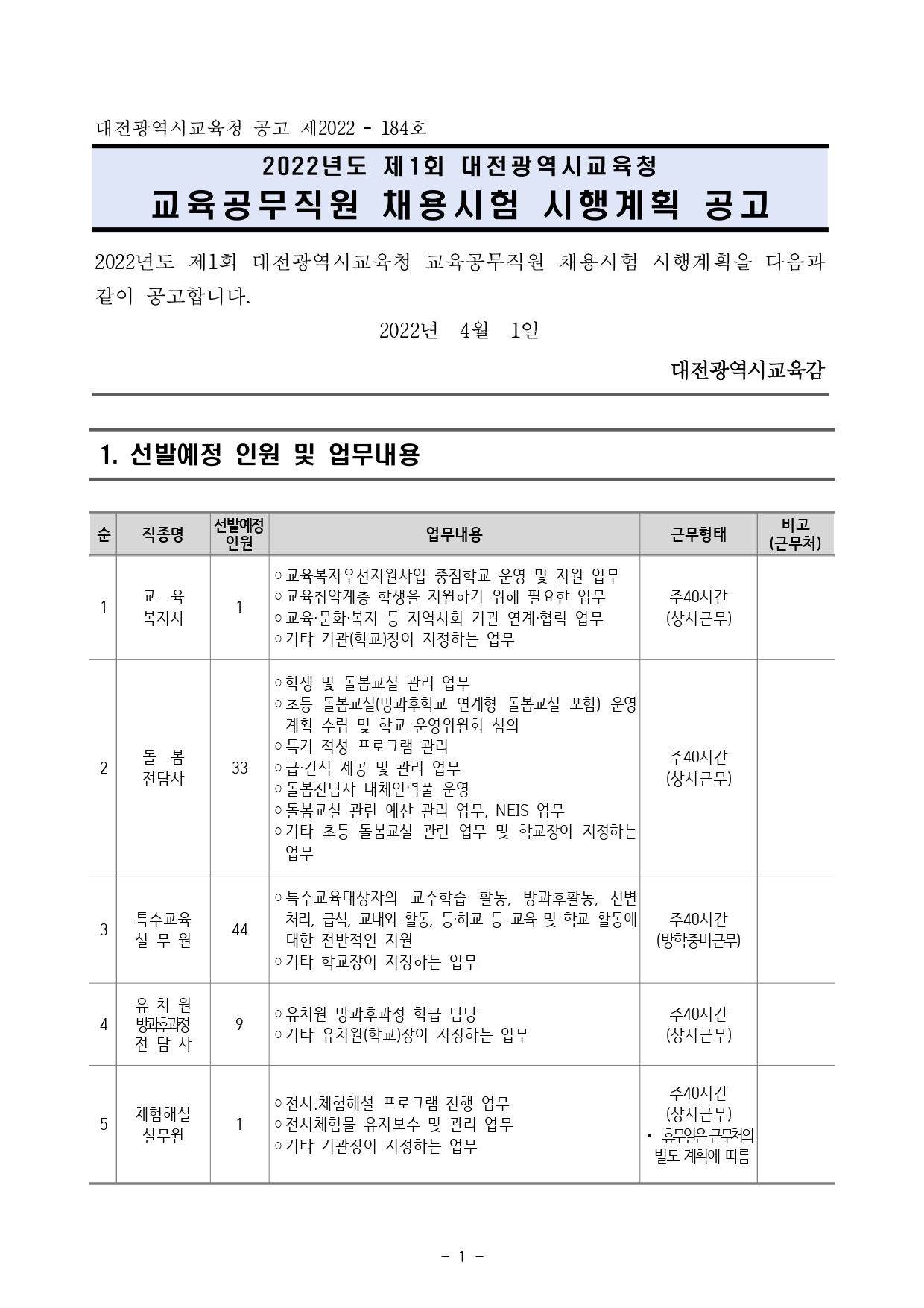 2022년도 제1회 대전광역시교육청 교육공무직원 채용시험 시행계획 공고입니다.