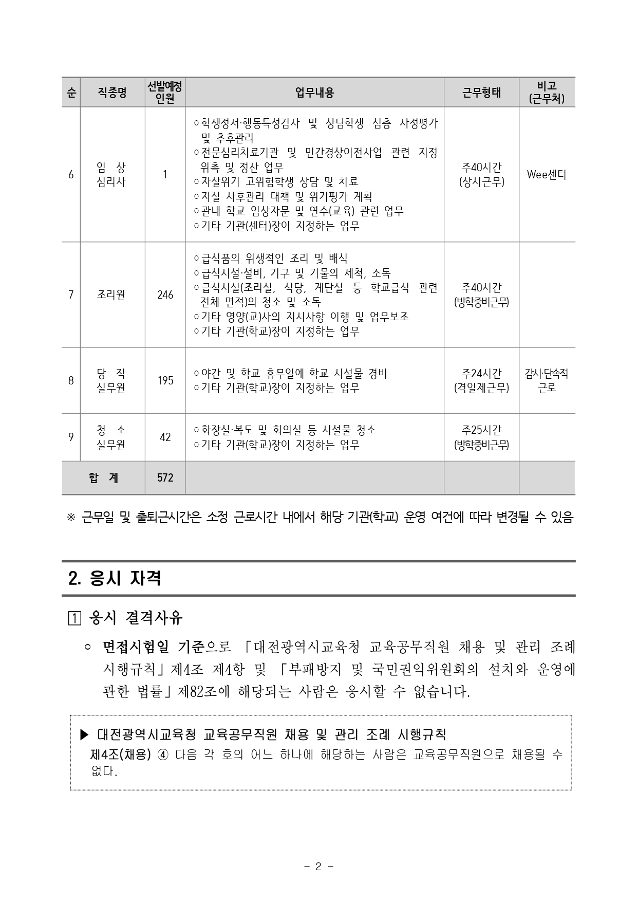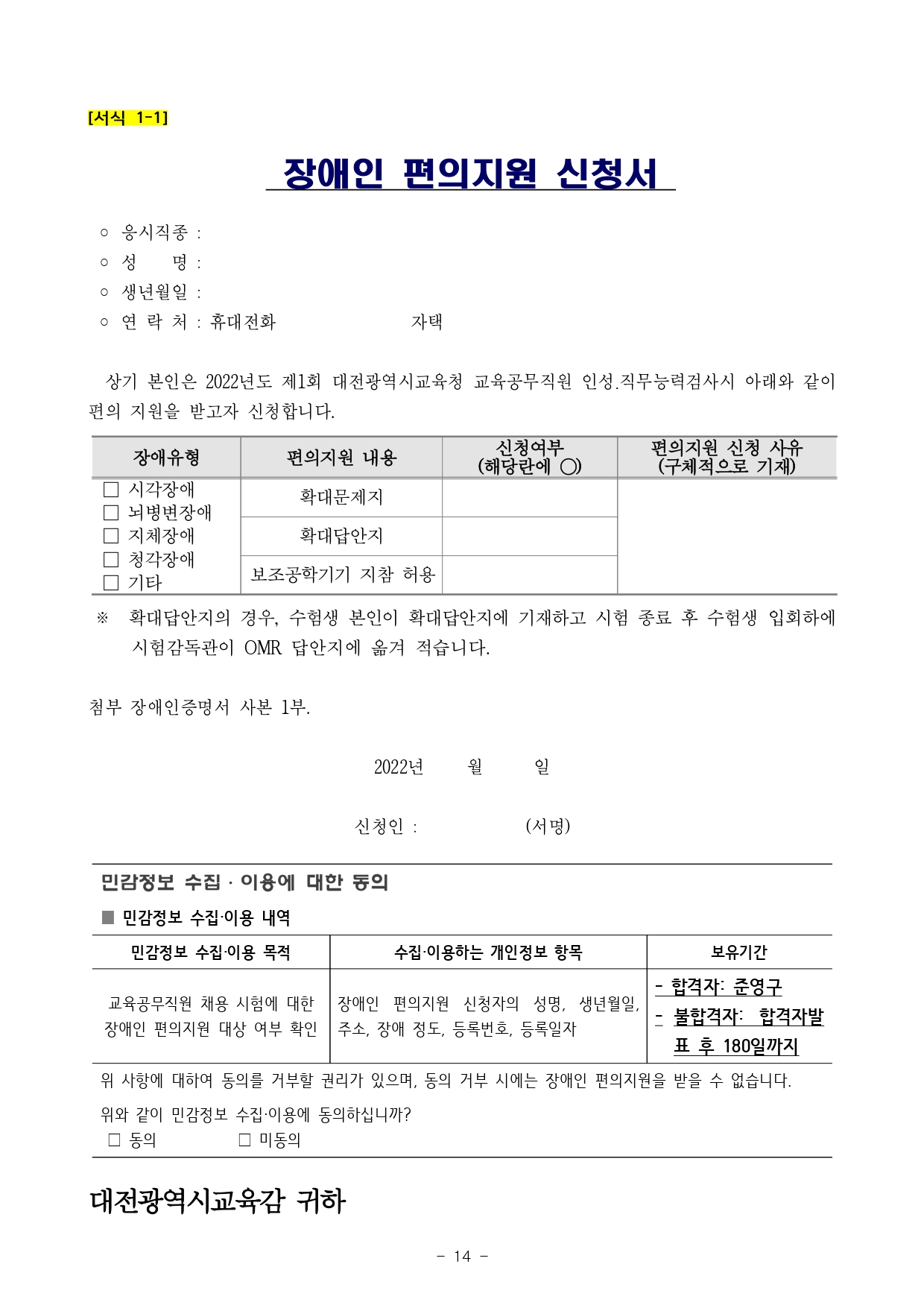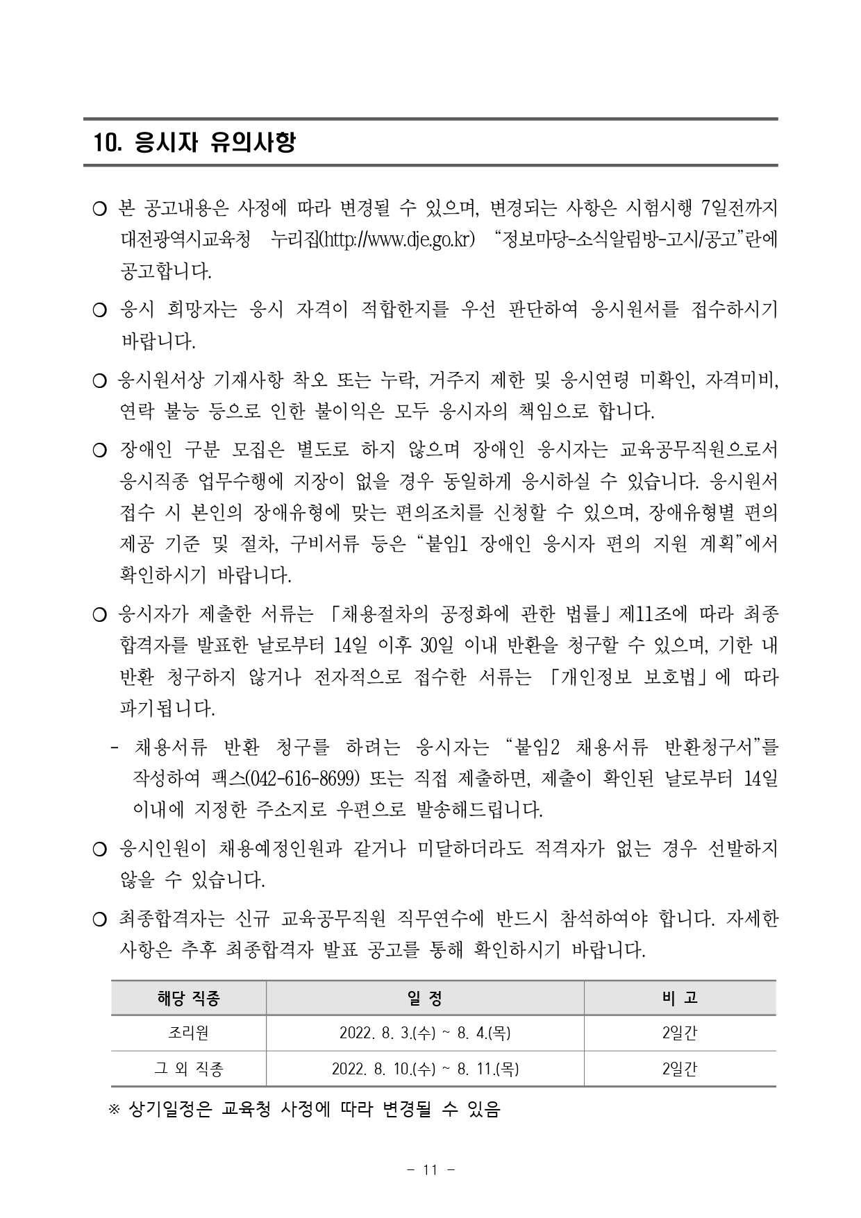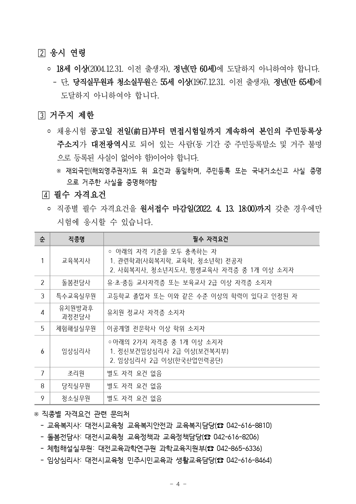 2022년도 제1회 대전광역시교육청 교육공무직원 채용시험 시행계획 공고입니다.