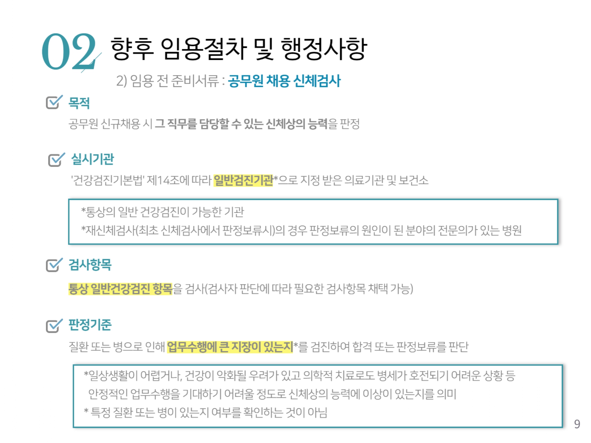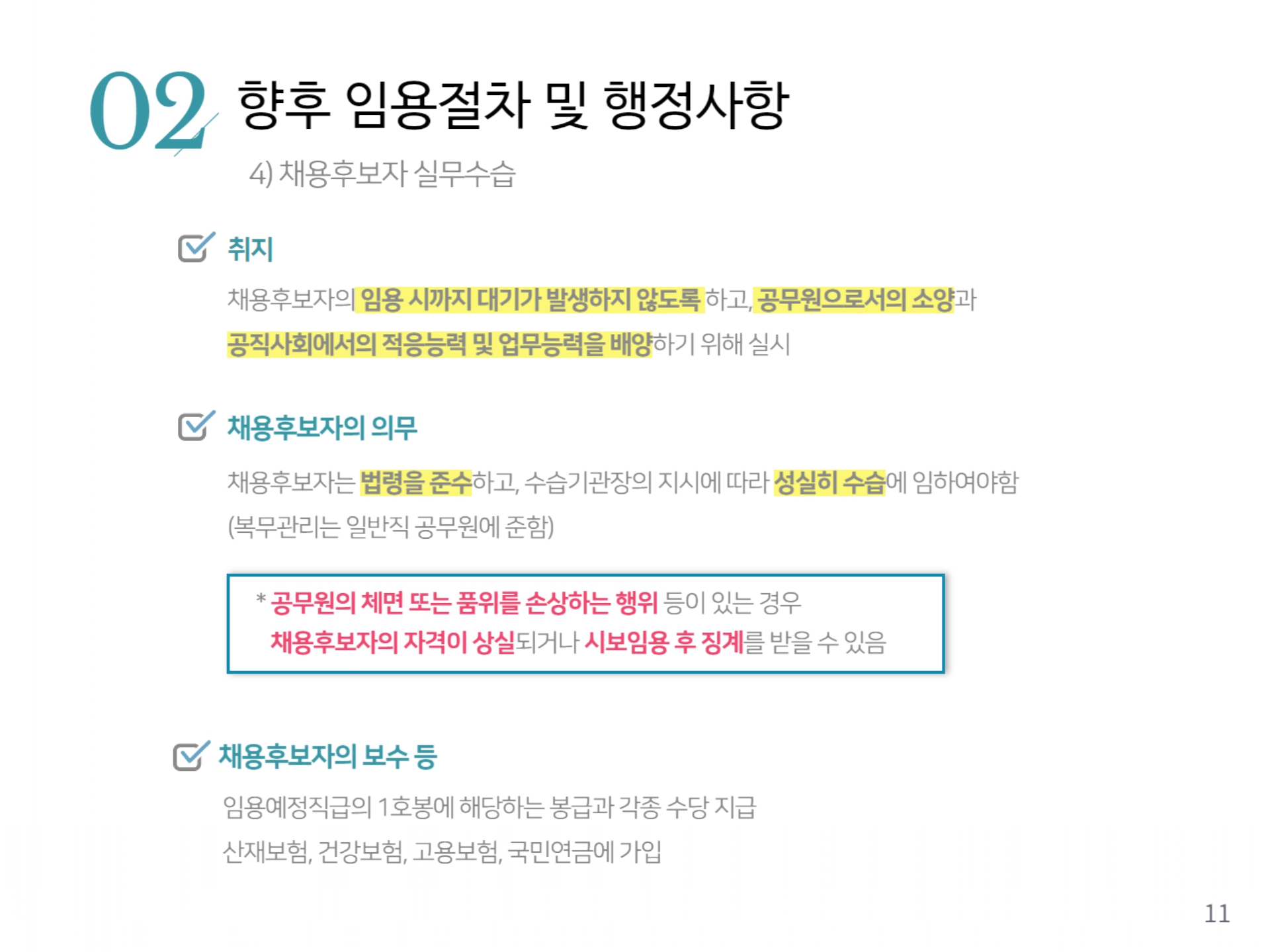 임용절차, 임용유예 조건, 배치 부서 등이 잘 나와있습니다.