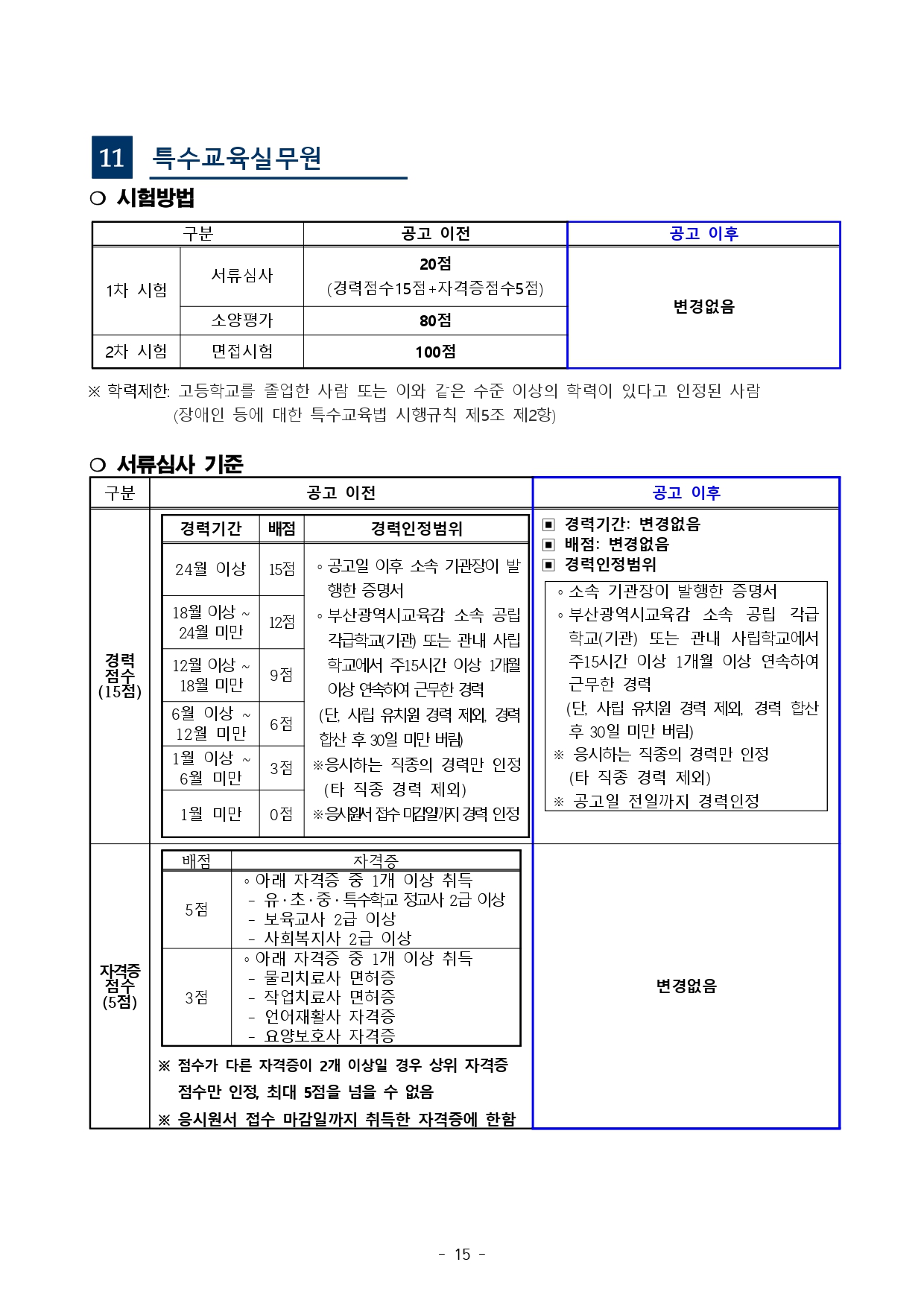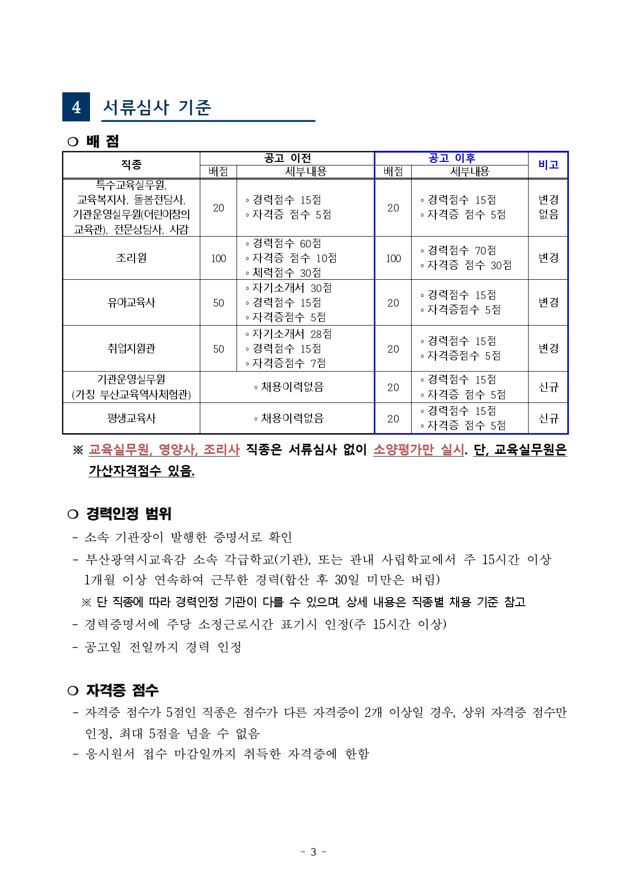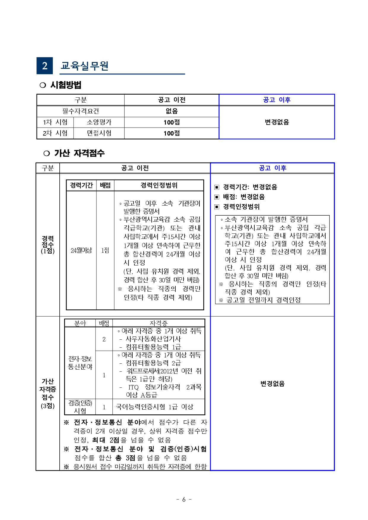 「부산광역시교육청 교육공무직원 채용시험 기준」을 다음과 같이 사전 안내해 드리오니, 시험준비에 참고하시기 바랍니다.