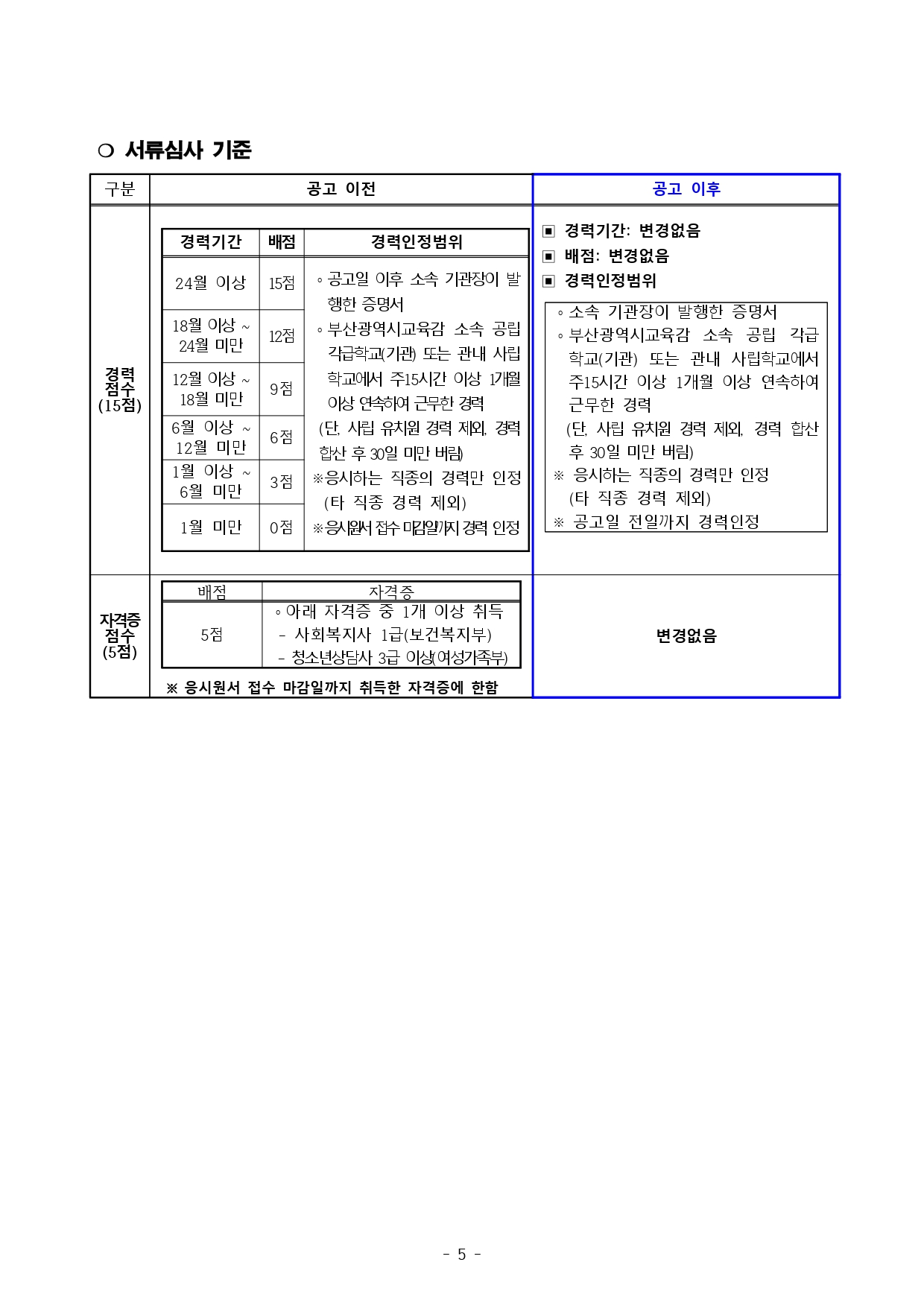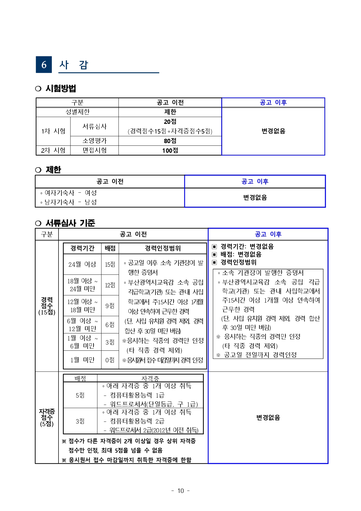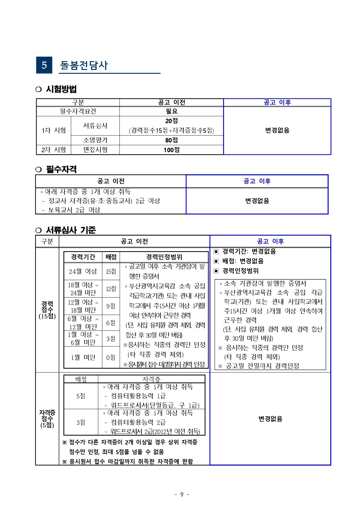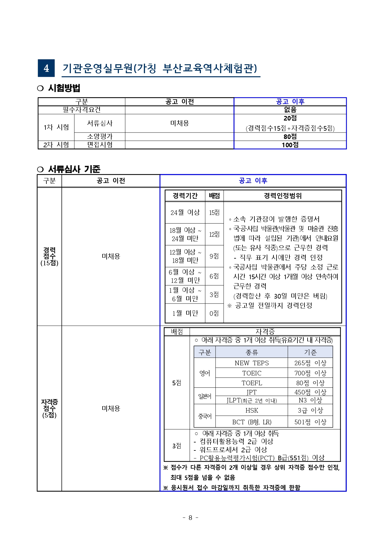 「부산광역시교육청 교육공무직원 채용시험 기준」을 다음과 같이 사전 안내해 드리오니, 시험준비에 참고하시기 바랍니다.