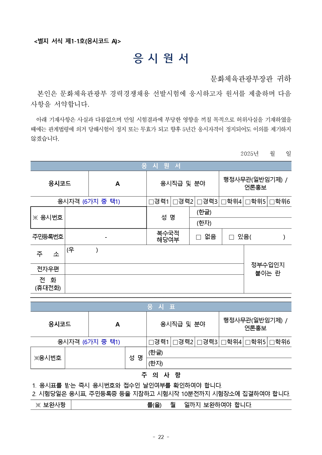 문화체육관광부에서는 공무원임용시험령 제3조 및 제47조에 따라 우수 인재의 공직유치를 위한 국가공무원 경력경쟁채용시험을 다음과 같이 공고하여 시행하오니 많은 응시 바랍니다.